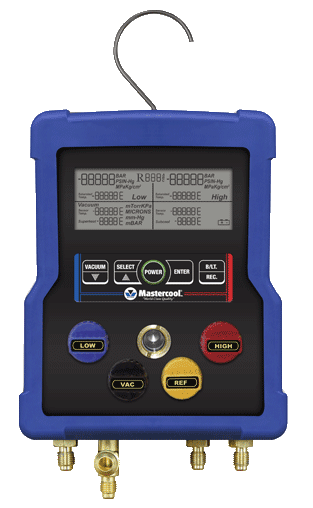 * Display de vacio, saturación, presión con valores en alta y baja mostrados en PSI, Bar, MPa, kg/cm2 y InHg