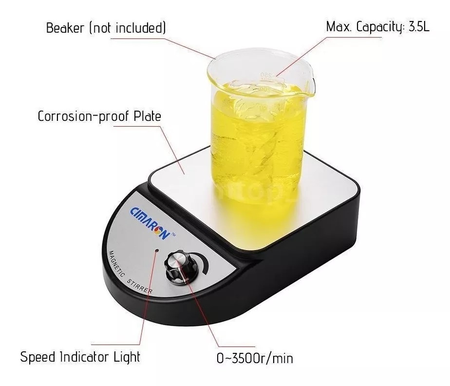 - Velocidad ajustable: 0 ~ 3500r / min; Max. Capacidad de agitación: 3.785L.