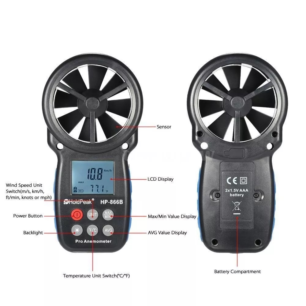 | ANEMOMETRO TERMOMETRO DIGITAL PORTATIL 0-30M S MARCA HOLDPEAK MODELO HP-866B