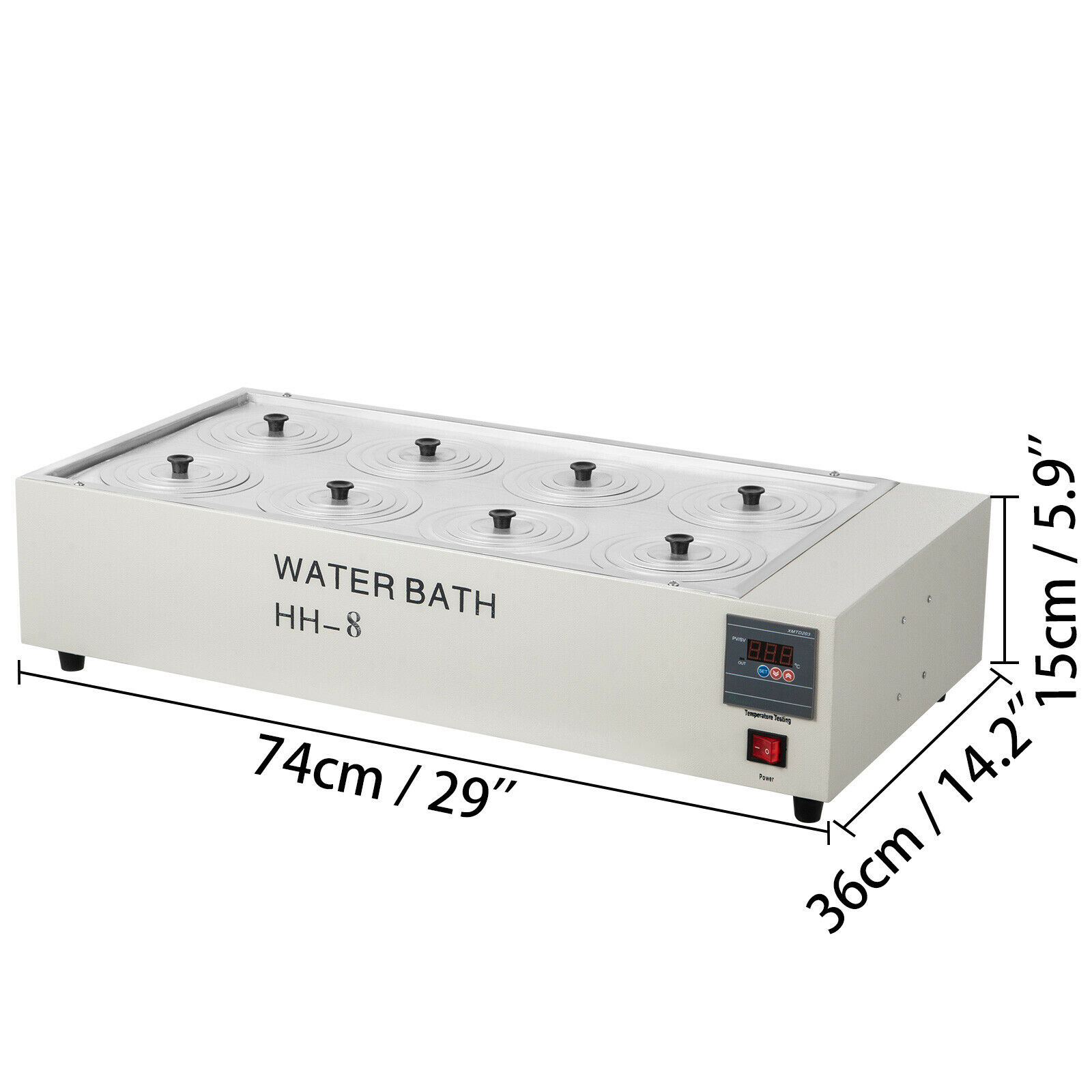 Excelente calidad - Potencia: 1500W; Tamaño del tanque: 23.6x11.8x4.3 "; Apertura: 8; El baño de agua del laboratorio está hecho de acero inoxidable de alta calidad, resistente al óxido y a la corrosión para un mayor tiempo de servicio.