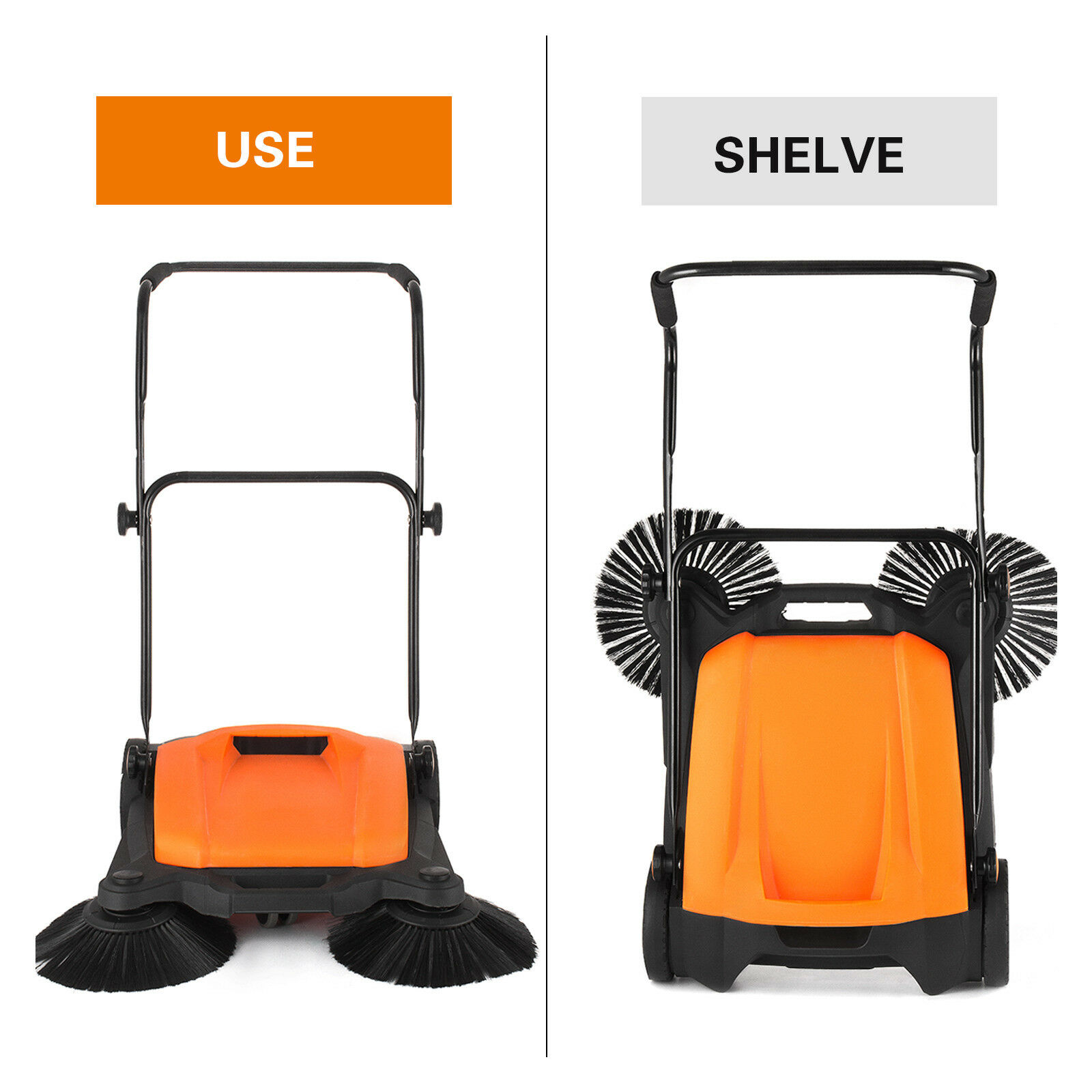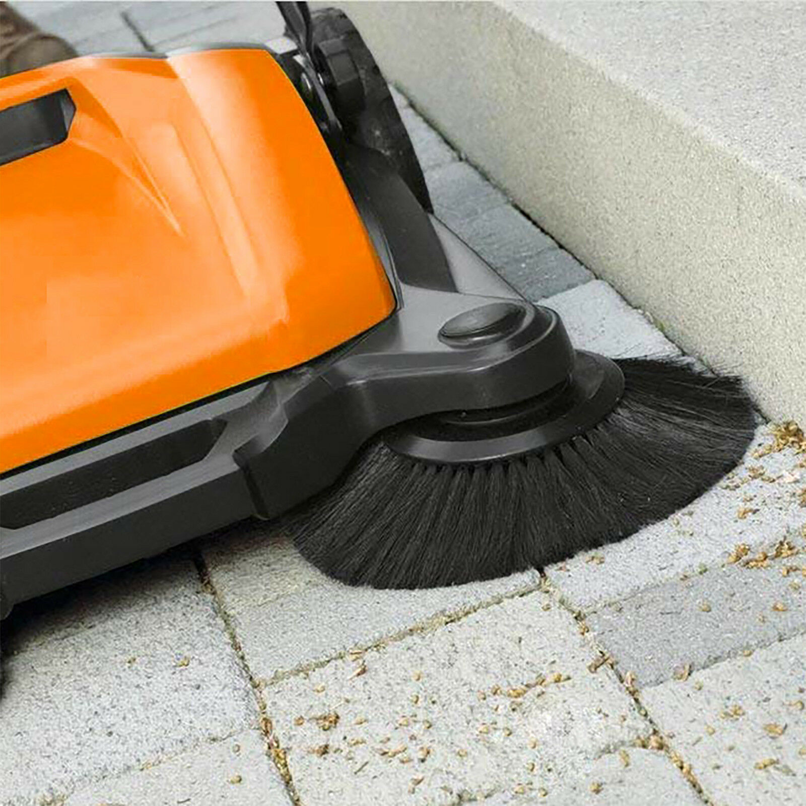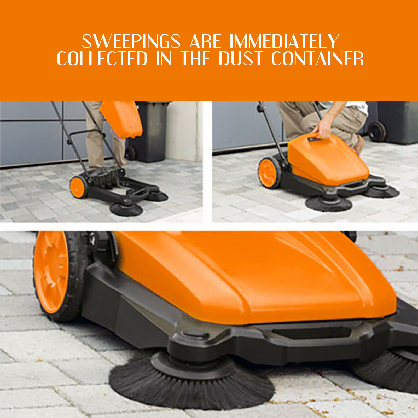 -Es una barredora para exteriores, fácil de usar con un mínimo esfuerzo, la basura es recogida de inmediato en el contenedor de polvo.