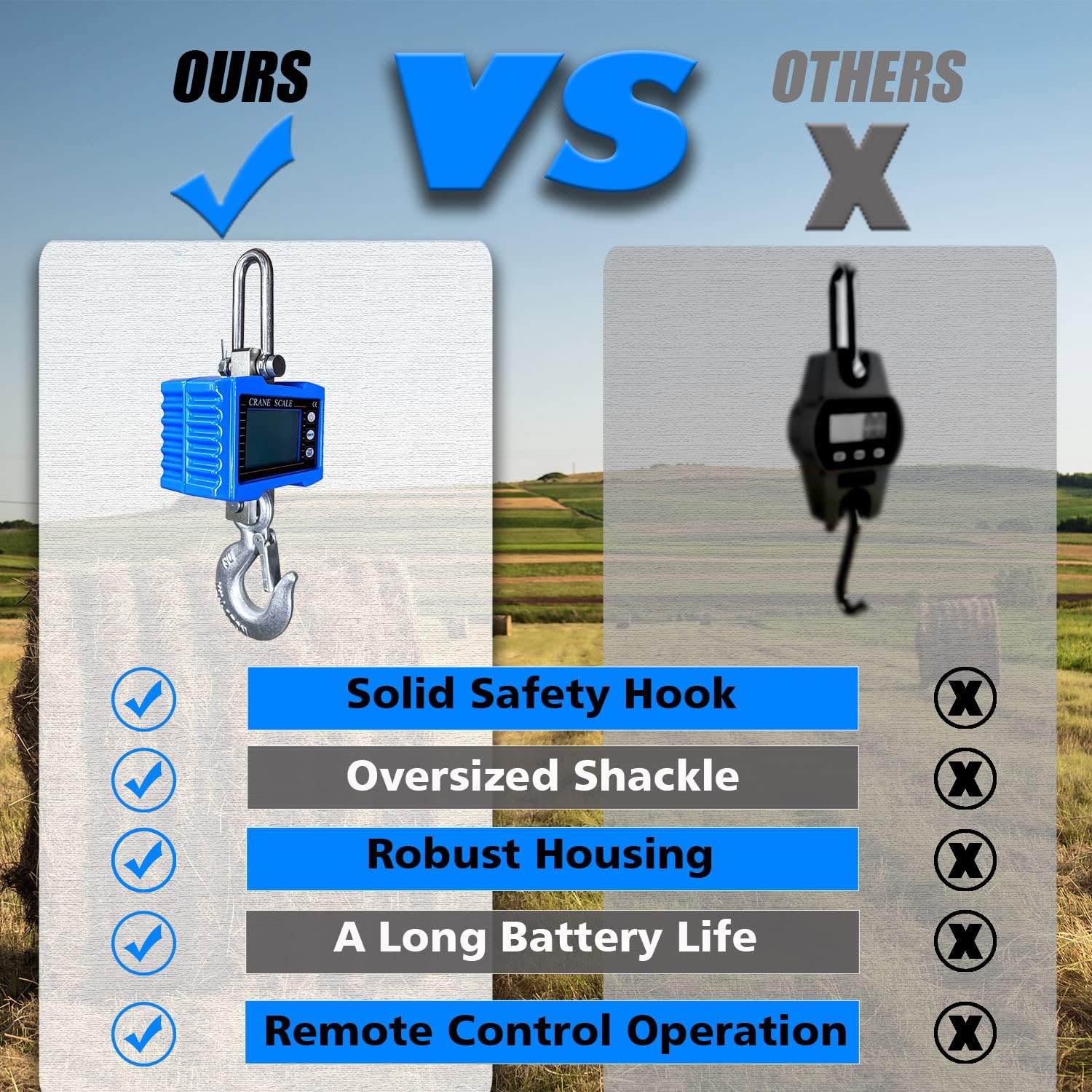 -CONFIABILIDAD FUERTE: La báscula colgante digital con una capacidad máxima de 2000 lb está equipada con un sensor preciso, tiene una alta precisión de medición y la división de la báscula de grúa es de solo 0.4 lb.