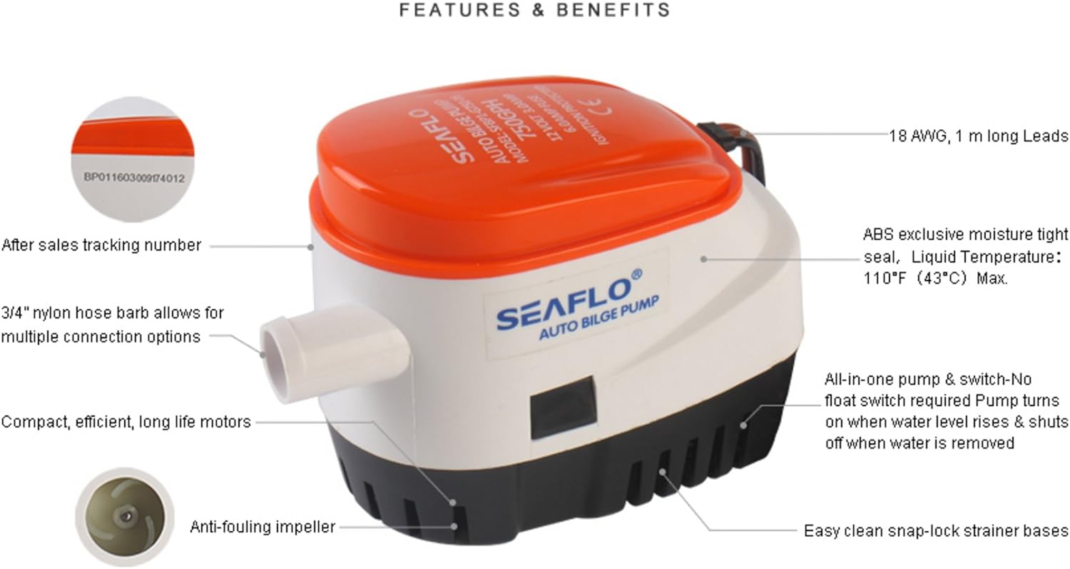 -Capacidad de caudal: 750 galones por hora (2850 litros por hora) - 47,5 litros por minuto.