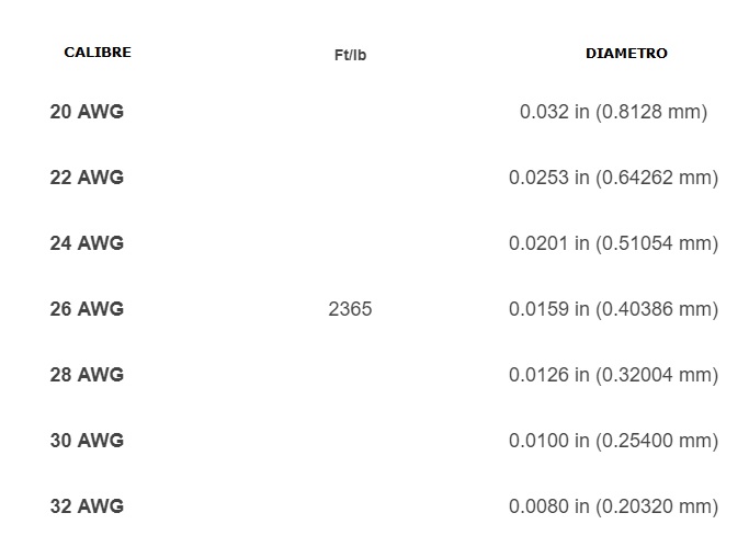· ESPECIFICACIONES SOBRE CALIBRE EN LA SEGUNDA IMAGEN