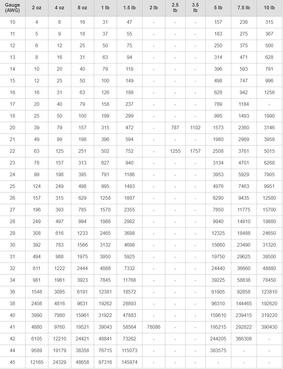 · ESPECIFICACIONES: EN LA SEGUNDA IMAGEN SE ENCUENTRA UN CUADRO QUE INDICA LA LONGITUD DEL CABLE EN PIES PARA CADA INCREMENTO.