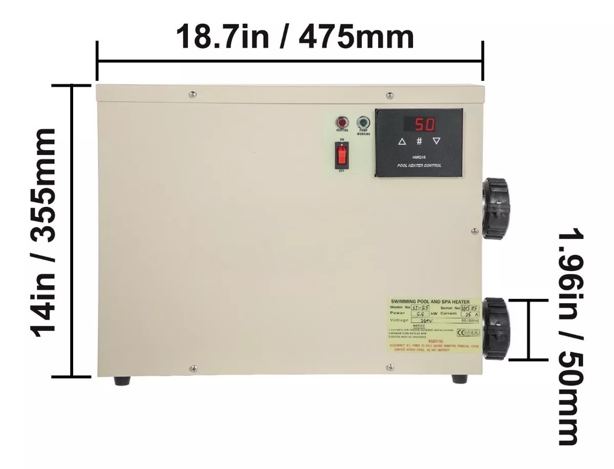 -1 kW es adecuado para 1 pie cubico: El termostato de 11 KW es adecuado para una piscina con menos o igual a 259 pies cubicos / 7,3 metros cubicos (7,300lts)