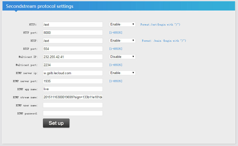 Flujo de programa: Protocolo HTTP, UTP, RTSP, RTMP, ONVIF