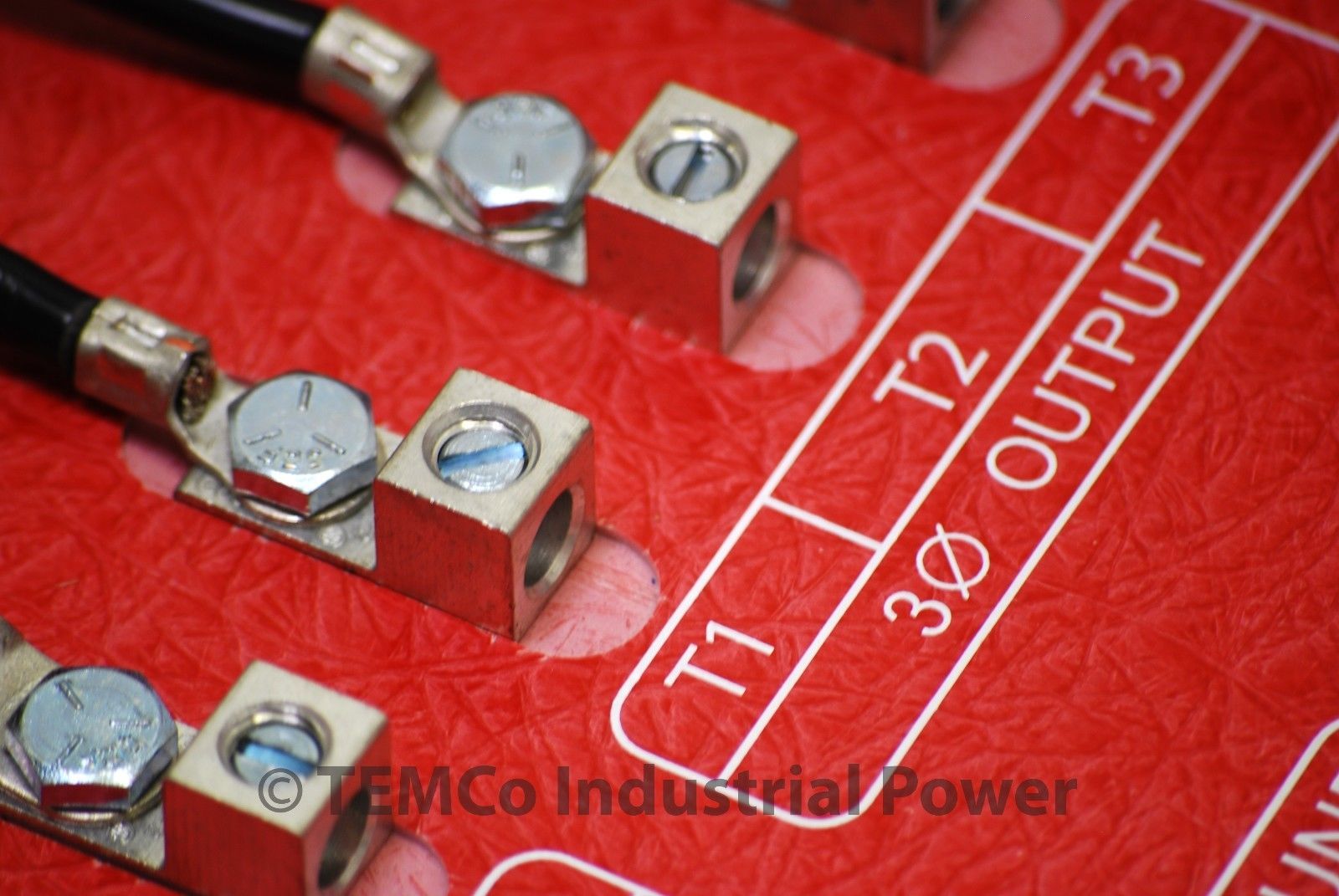 Tensión de salida de 3 fases = Tensión de entrada + 5% en T2 (sin carga)