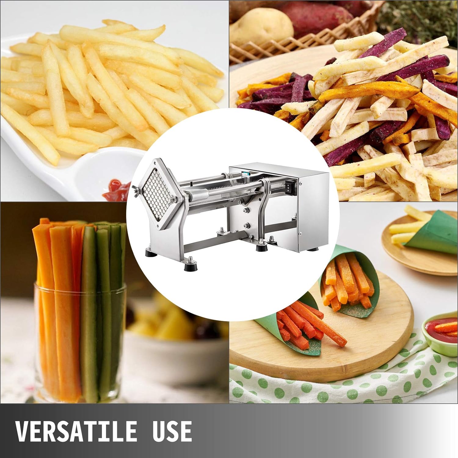 -Uso versátil: Ampliamente utilizado para procesar papas a papas fritas. También puedes utilizar esta máquina en otros alimentos como manzana u otra cosa.