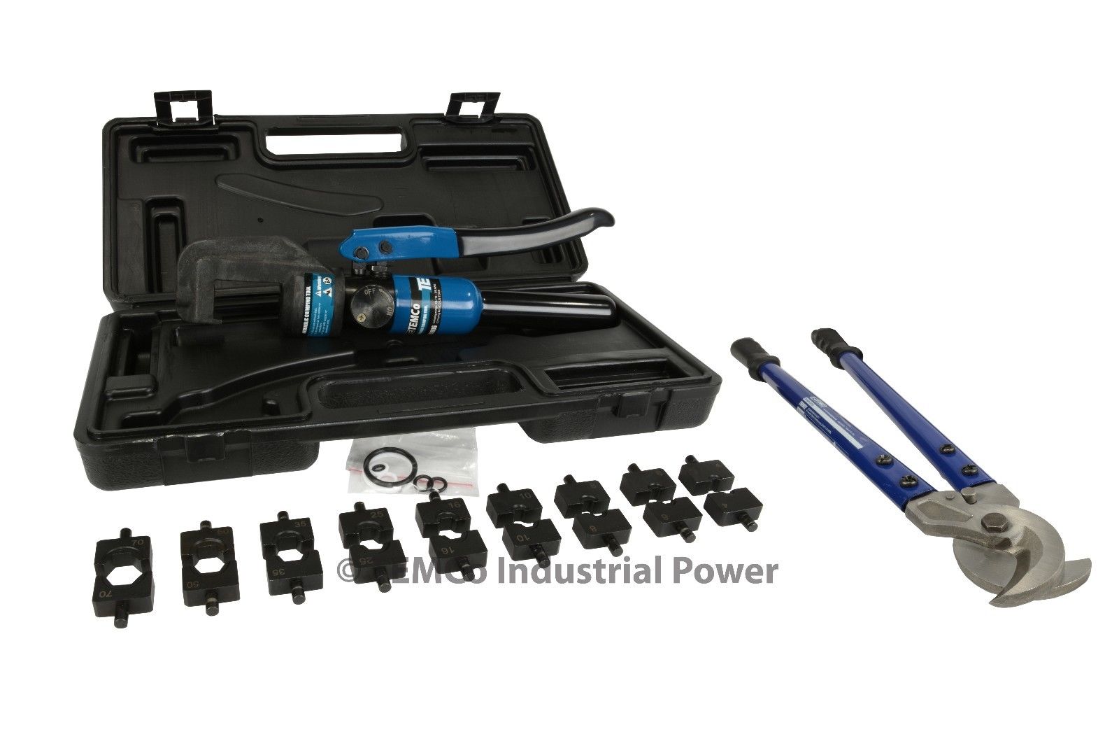 Rango de prensado: 12 a 00 AWG (2/0) (4mm² a 70mm²). Incluye 9 juegos de troqueles.