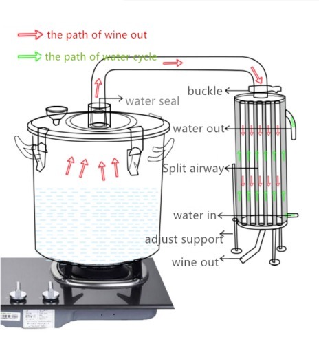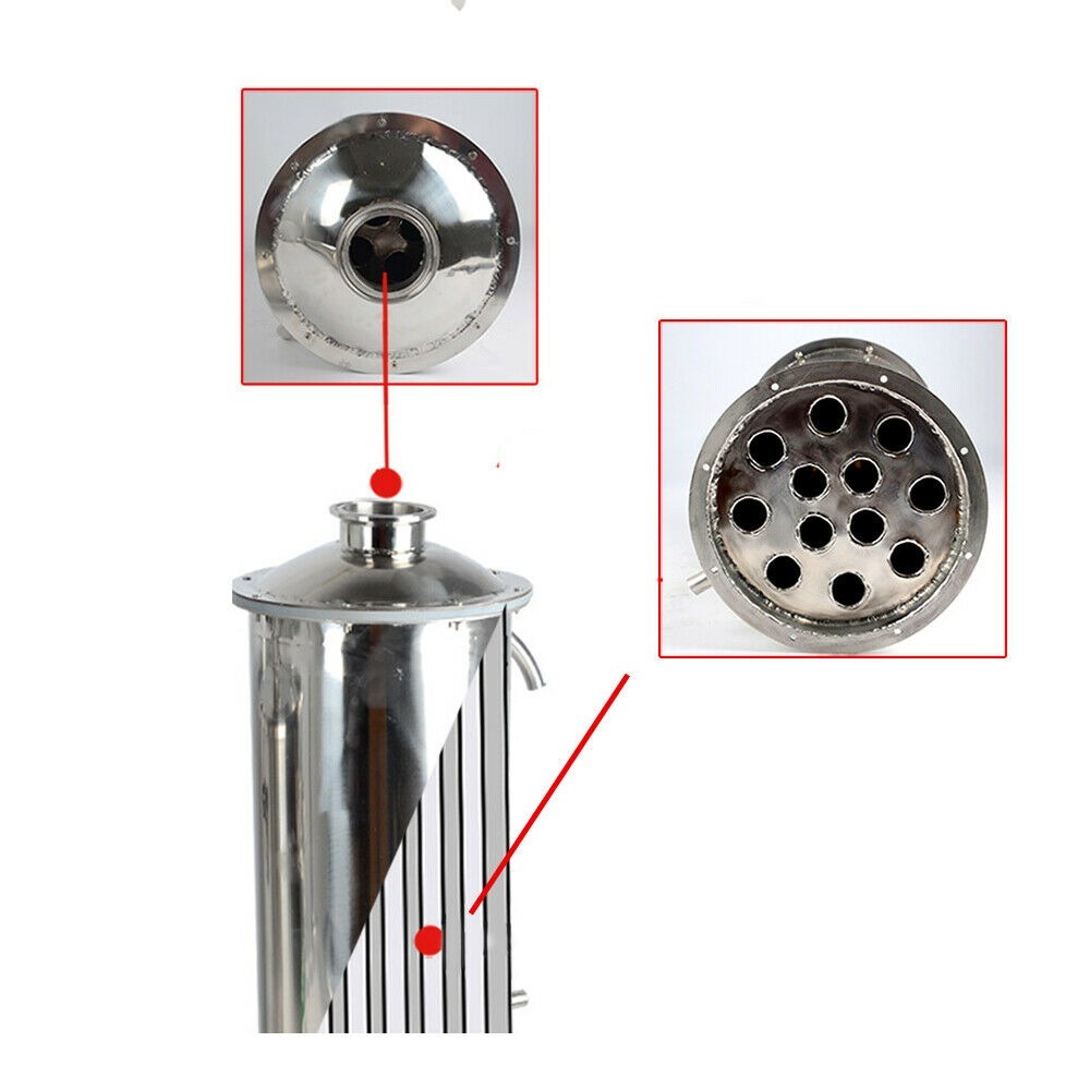 Este set de destiladores caseros es un completo set de vinificación; es muy fácil de configurar y usar, es particularmente adecuado para la producción de licores con un aroma fuerte (brandy, whisky, brandy de fruta, etc.), también para aceites esenciales (perfumes, remedios y licores) pero la mayoría de todo para alcohol de alta graduación (vodka). También puede producir agua destilada
