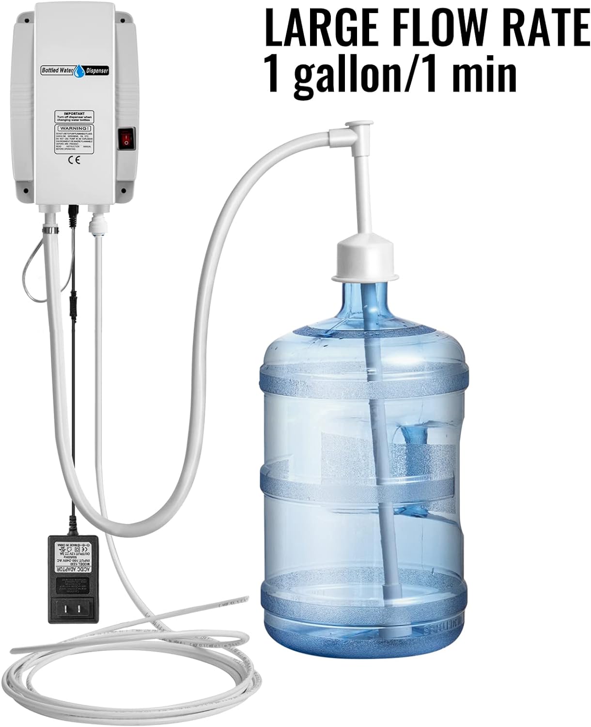 -GRAN VELOCIDAD DE FLUJO: el dispensador de bomba de agua puede bombear hasta un galón de agua como máximo, lo que puede llenar rápida y fácilmente cualquier cosa que necesite. La válvula de retención incorporada evita el reflujo y se adapta a una variedad de botellas. La protección térmica evita el sobrecalentamiento, protegiendo la bomba y la caja de control de daños.