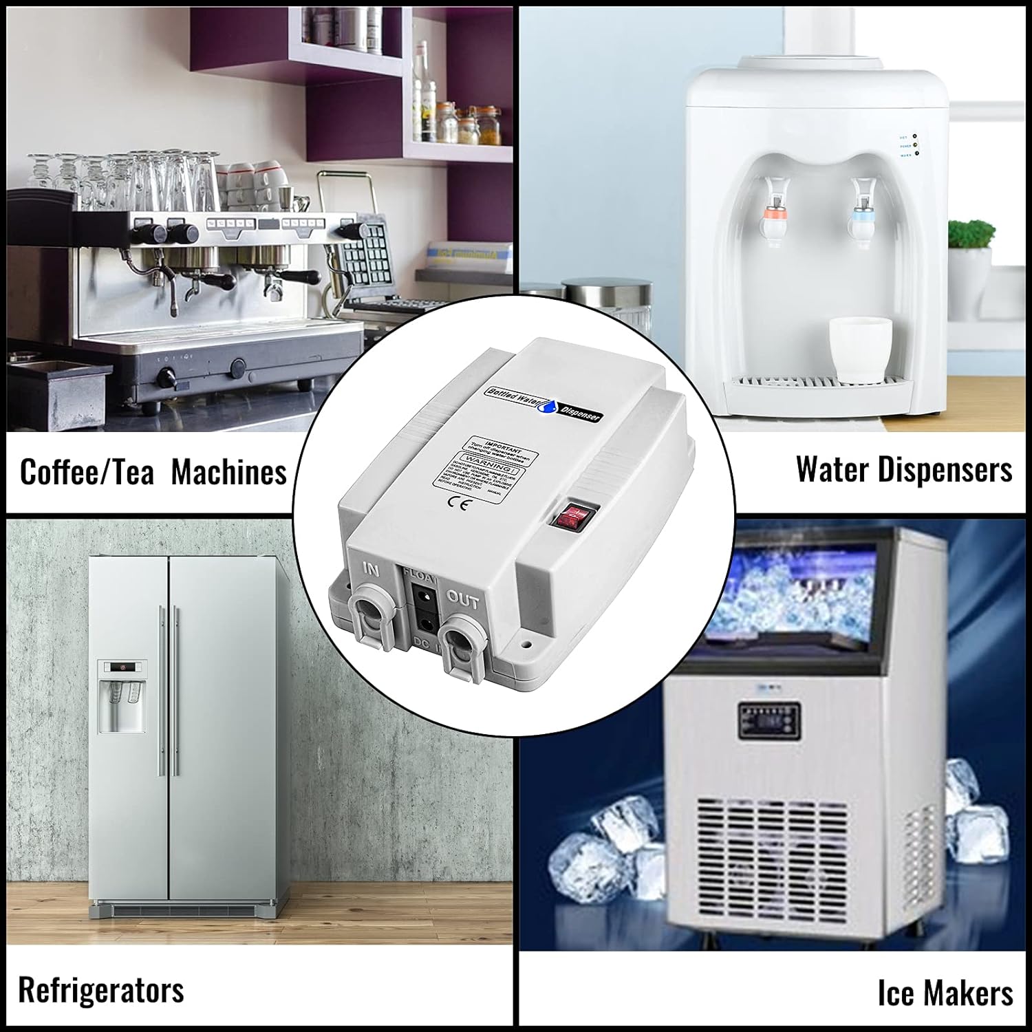-APLICACIONES AMPLIAS: nuestro dispensador de bomba de agua entregará el agua en la entrada de un refrigerador para la máquina de hielo y el grifo de agua potable refrigerada. Es perfecto para máquinas de café / té, dispensadores de agua, refrigeradores, máquinas de hielo y en cualquier otro lugar donde se necesite suministro de agua a pedido. Puede satisfacer todas sus necesidades.