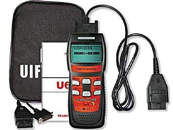 Escáner automotriz MEMOSCAN U585, cable OBDII, manual de operación, funda de nylon, cd de funciones.