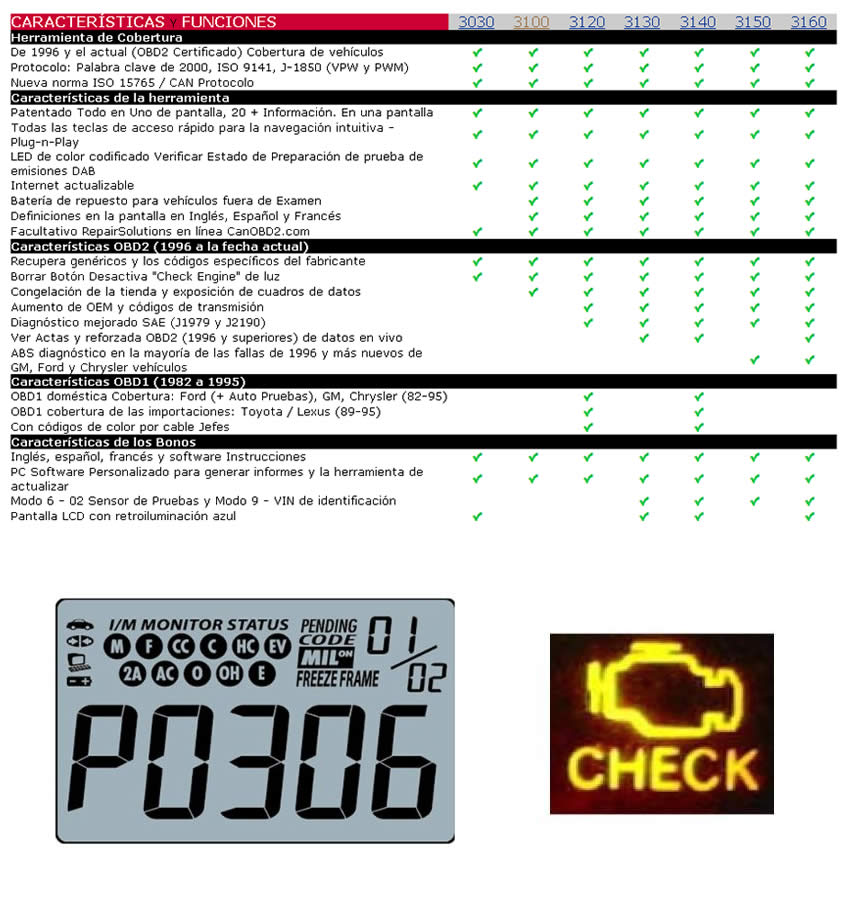 Cobertura en sistemas OBDI para las marcas Chrysler, Jeep, Dodge, Ford, Mercury, Lincoln, Buick, Pontiac, GMC, Hummer, Chevrolet, Cadillac.