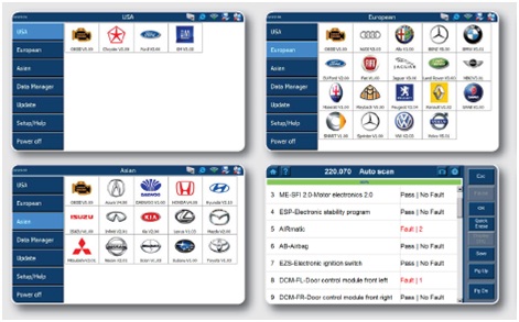 Cuenta con funciones precisas por marca y modelo, accede a todos los módulos del vehículo como son: sensores de llantas, tableros, luces, aire acondicionado, tren motriz, radio, quemacocos, etc, siempre y cuando la computadora del vehículo soporte dichas funciones.
