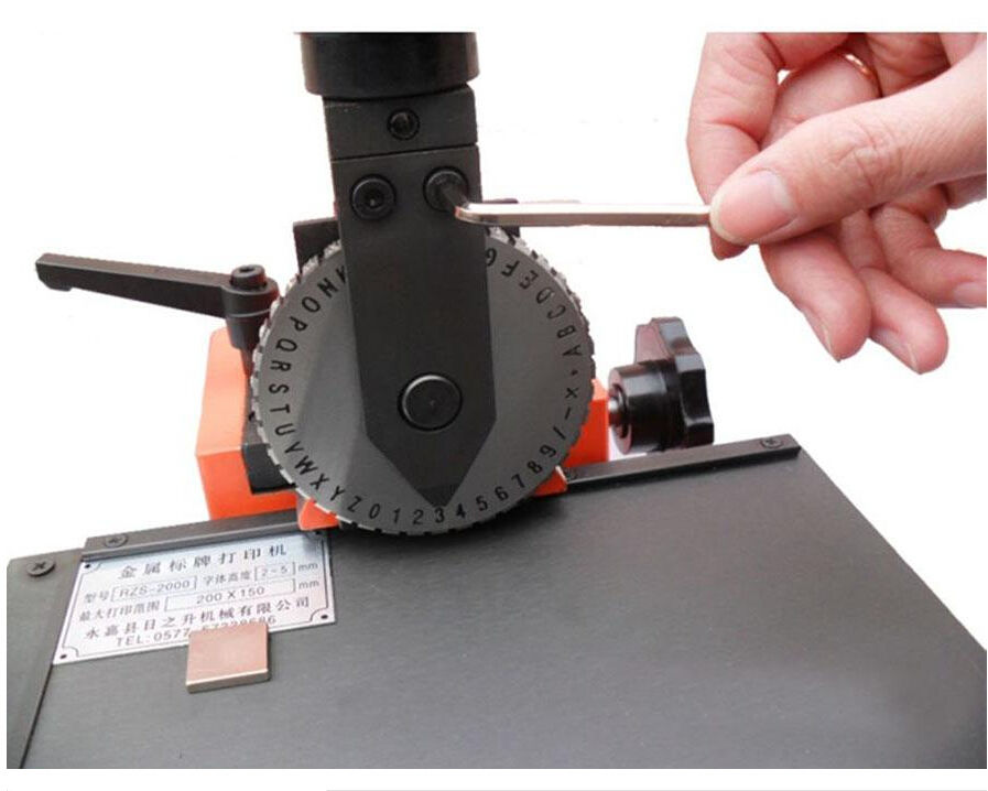 Maquina etiquetadora de tarjetas de distintos materiales como lo son: Hierro, Aluminio, Cobre y Acero inoxidable, con esta máquina puede resaltar algunos datos para maquina mecánicas, eléctricas, bombas, válvulas, automóviles, motocicletas y electrodomésticos, para realzar la fecha, folio del aparato.