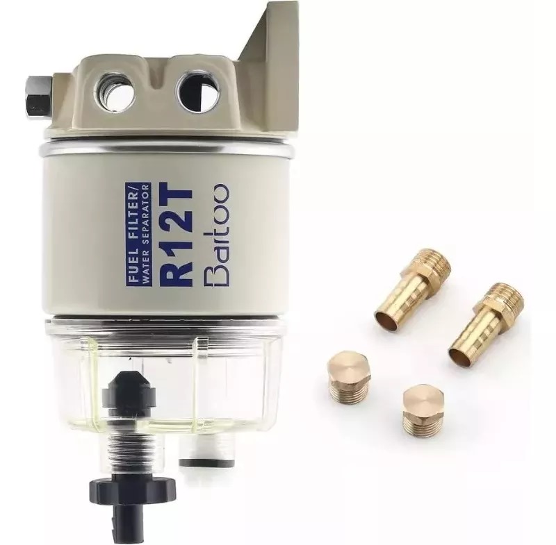 -Aplicaciones y número de pieza de repuesto: para kit separador de combustible de agua marina R12T: NPT, ZG1/4-19 (tamaño de puerto/conexión M18 x 1.5 rosca central) Reemplaza la pieza # Reemplaza a Racor Parker S3240, R12T, S3213, S3227,8027. 893t y así sucesivamente.