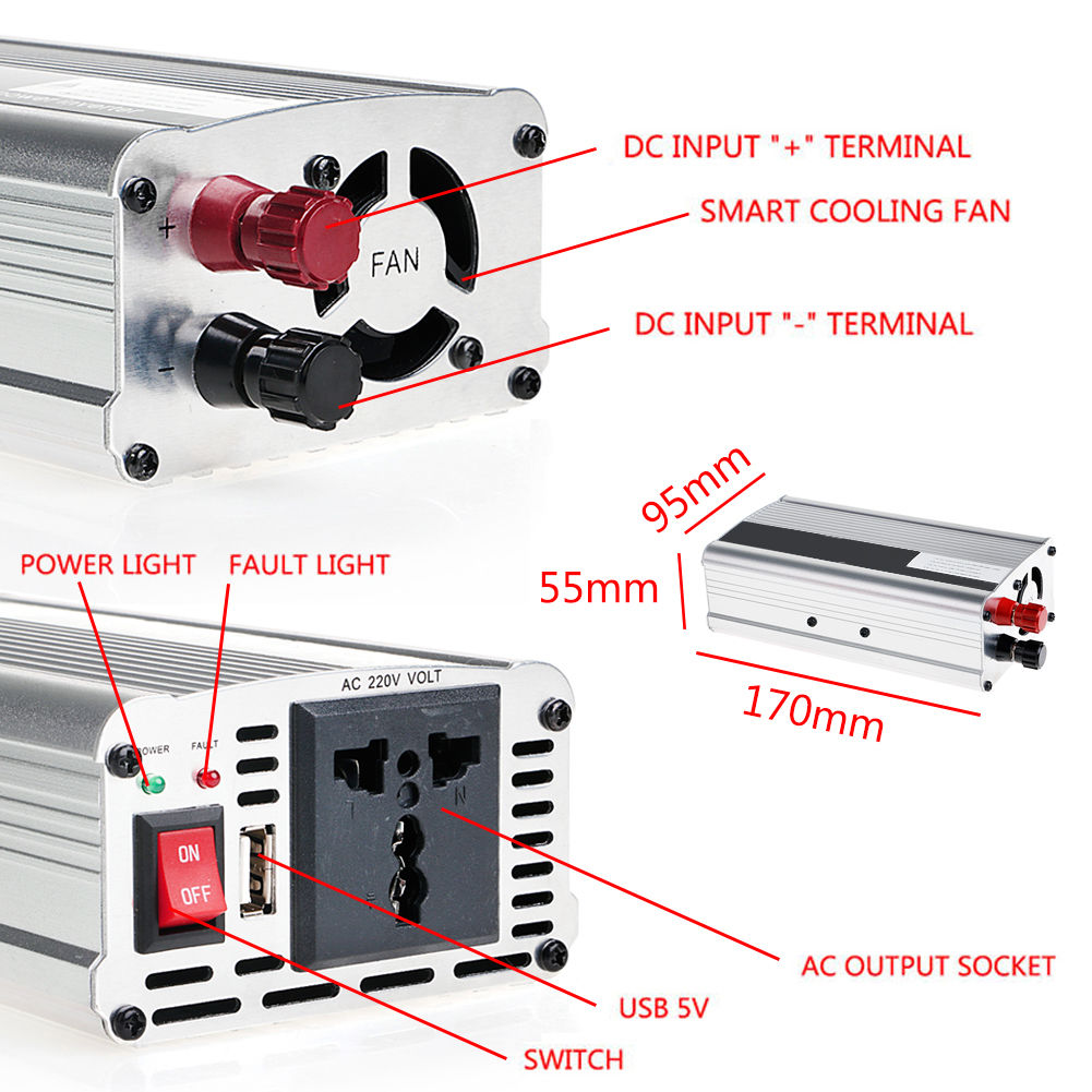INVERSOR DE CORRIENTE 1500W, pico 3000W 12V DC A 230V AC MARCA: Genérico MODELO: IC-3000W