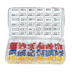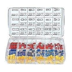 · Incluye un surtido popular de anillos de terminales, desconexiones macho y hembra y conectores de tope