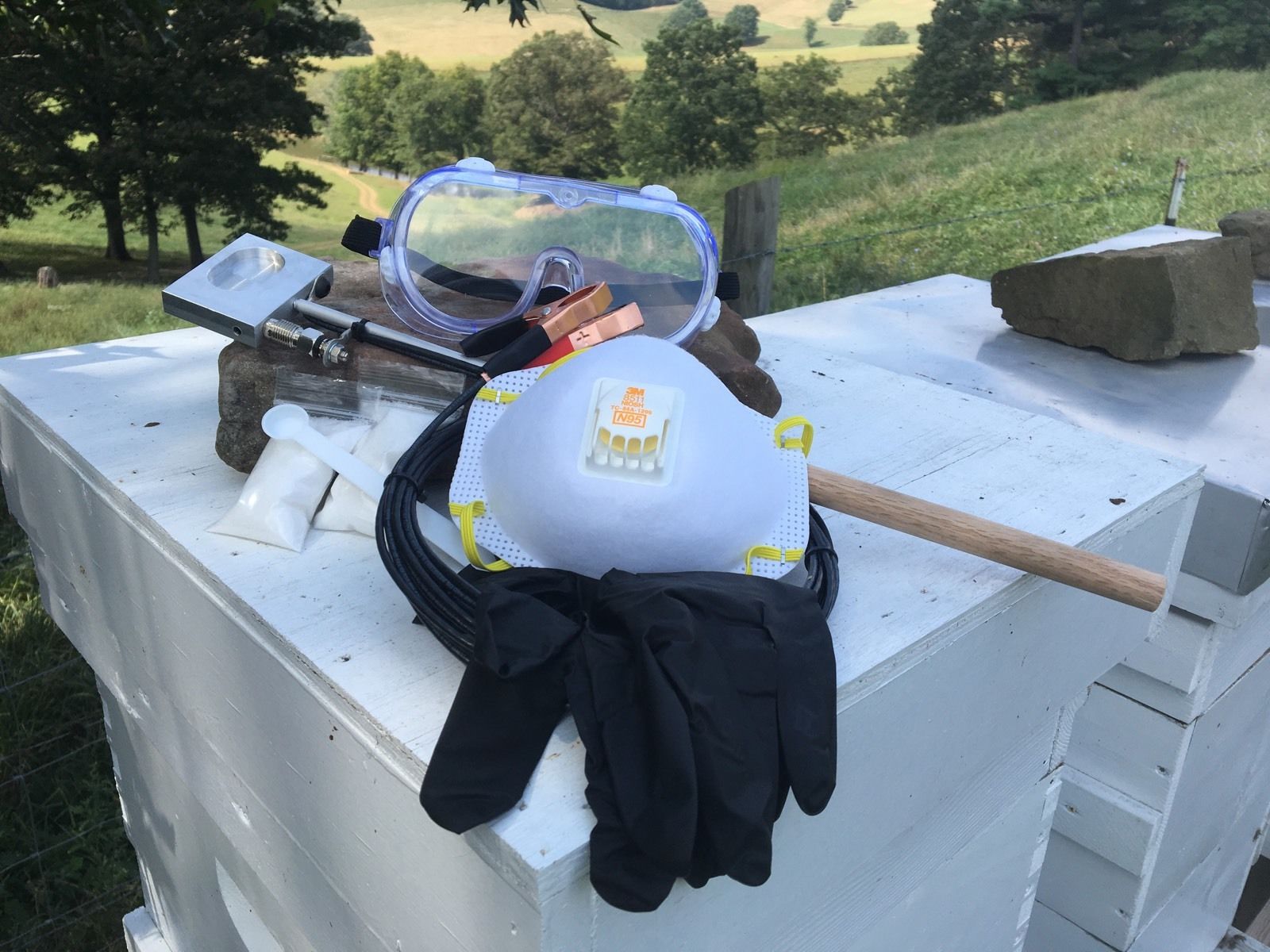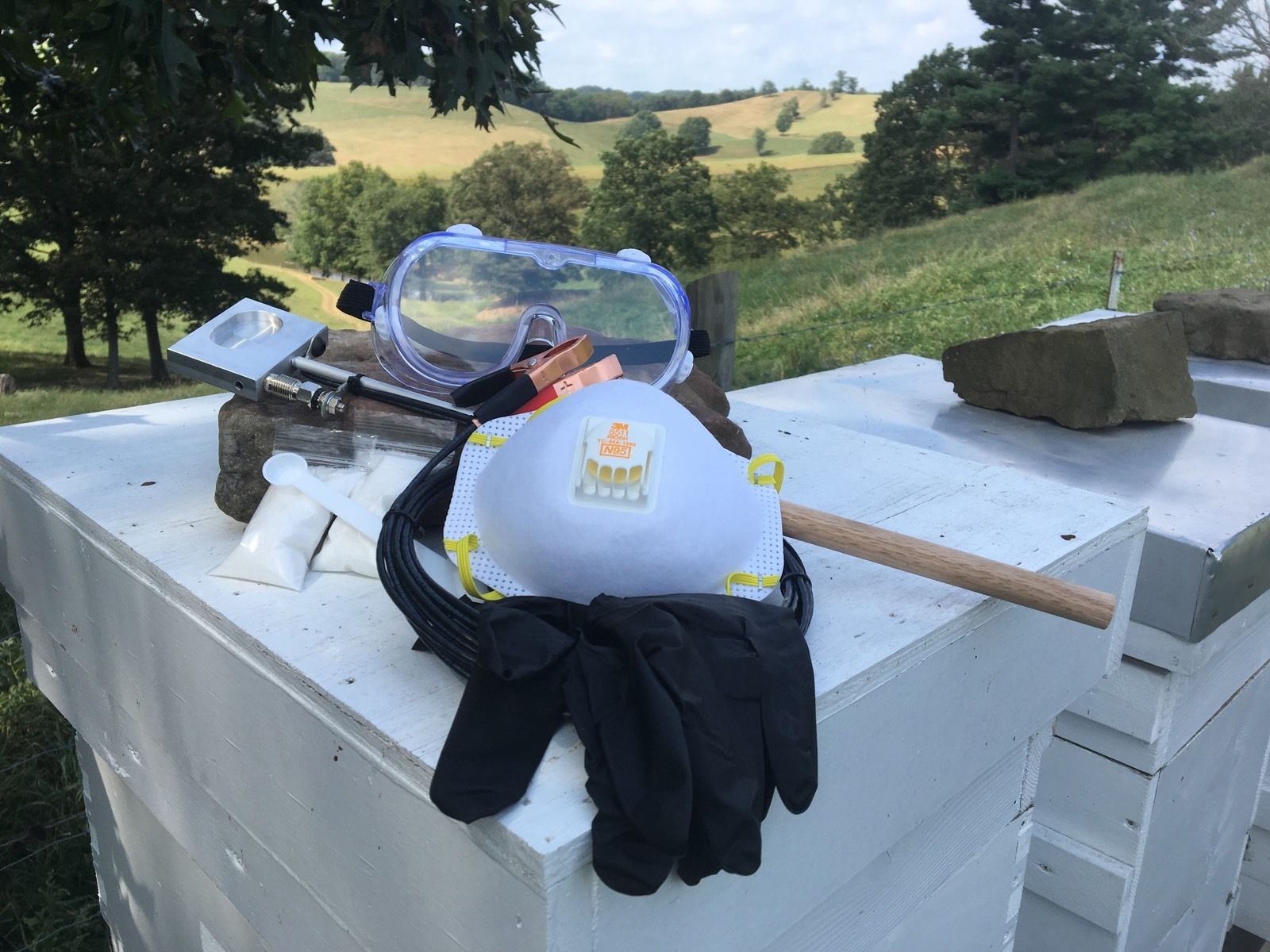 Se requiere hacer una prueba de calentamiento de ácido oxálico para determinar el tiempo de sublimación. Llene el vaporizador con la cantidad deseada de oxálico, 1/4 cucharadita por cámara de cría pero no más de 1/2 cucharadita, y conéctelo a la batería. Mida el tiempo que demora el oxálico en sublimarse y hacer una nota, 4-5 minutos dependiendo de la batería. Desenchúfelo después de que todo oxálico se haya sublimado o hayan transcurrido 5 minutos. Deje que el vaporizador se enfríe durante 5 minutos para evitar el sobrecalentamiento. Asegúrese de que todas las alzas de miel sean removidas de la colmena o separadas por una barrera no permeable entre las alzas de miel y la cámara de cría. Use 1/4 de cucharadita de ácido oxálico por caja de cría de abejas. Coloque la cantidad correcta de ácido oxálico en el plato en el vaporizador y colóquelo en la entrada de la colmena. Asegúrese de que la tabla inferior esté en la colmena. Selle la entrada de la colmena con un paño y conecte el vaporizador a una fuente de batería de 12 voltios, generalmente una batería de auto o cortacésped. Desconecte de la batería después del tiempo de sublimación determinado. Deje la colmena sellada durante diez minutos y luego retire la tela de la entrada. Oxalic debe usarse durante tres semanas consecutivas para matar los ácaros que han estado debajo de las tapas y es mejor usarlo en momentos en que la colmena no tiene crías (Principios de invierno, reina más nueva o después de un enjambre). Siempre haga un recuento de ácaros para confirmar la muerte de ácaros después del tratamiento.
