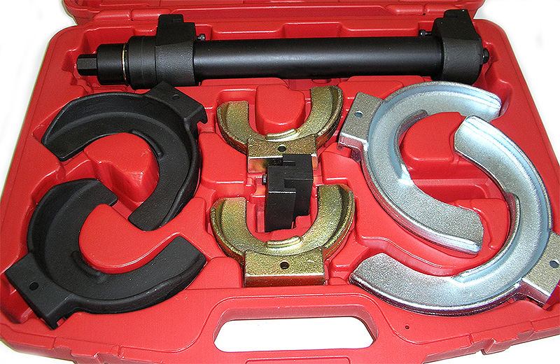 · Esta herramienta está diseñada específicamente para aplicaciones de motores de motocicletas pequeñas. Viene con cinco adaptadores del compresor del resorte y dos postes (con la longitud de la rosca 70m m y 90m m)