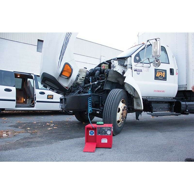 Limpia, previene y resuelve los problemas de los sistemas de inyección diesel. Tiene un diseño único y ultra portátil que viene con una bomba de combustible interna de 12 voltios de CC que funciona entre 7-9 psi y un tanque de cinco galones, manguera de combustible enrollada, ocho adaptadores de base Compucheck Fitting y un adaptador flexible de dispensación de fluido para llenar los filtros de combustible.