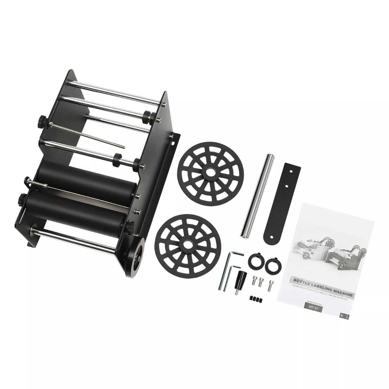 -Excelente rendimiento: puede ajustar manualmente la velocidad de etiquetado de las botellas para garantizar una alta precisión y una calidad de etiquetado de la etiqueta adherida sin arrugas ni burbujas. Además, los rodillos de primera calidad garantizan un funcionamiento más suave y estable, mejorando eficazmente la eficiencia del trabajo.