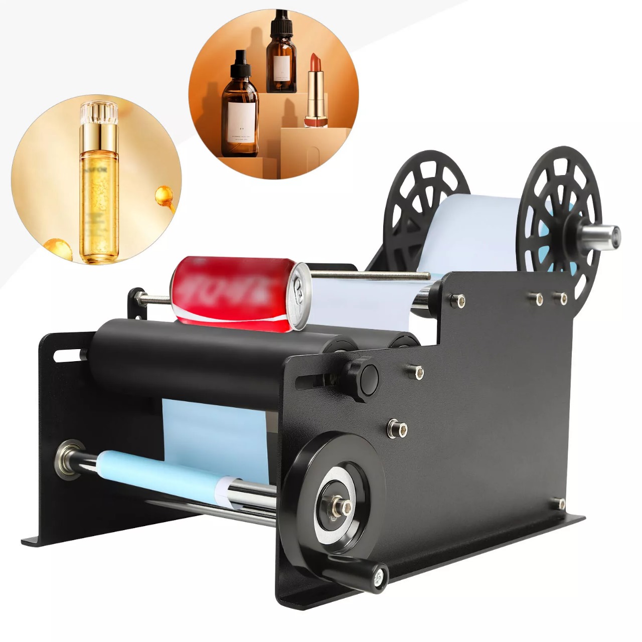 -Es adecuada para botellas redondas como botellas PET, botellas de plástico, botellas de vidrio, botellas de metal, botellas de condimentos, botellas de vino, botellas de bebidas, botellas de medicamentos, latas y bebidas enlatadas. Es ideal para la producción manual de etiquetas a pequeña escala en alimentos y bebidas, granos y aceites, productos farmacéuticos, cosméticos, productos químicos de uso diario, químicos y otras industrias. Se puede utilizar para pegar etiquetas transparentes y opacas.