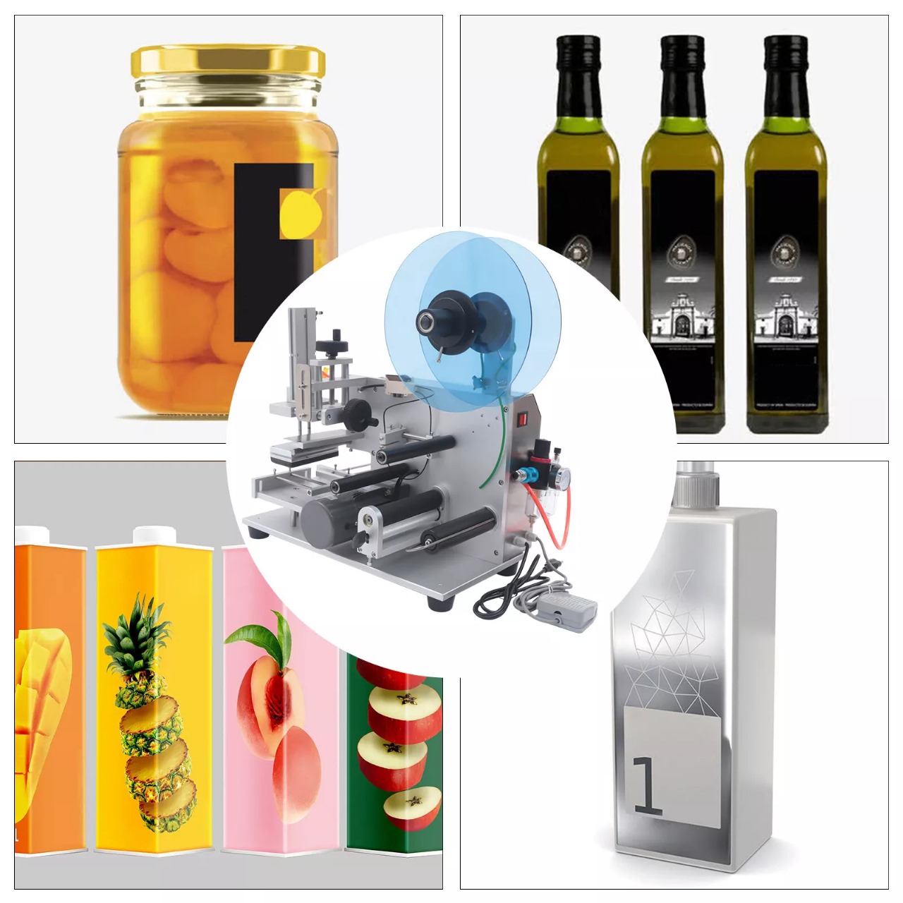 -Esta máquina se usa ampliamente en las industrias cosmética, de bebidas, alimentaria, médica y otras. Es adecuada para todo tipo de botellas cuadradas, como botellas de plástico, botellas de vidrio, botellas de metal, etc.