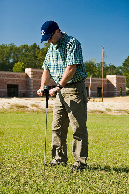 Se puede insertar una varilla larga de acero inoxidable (con marcas de profundidad de 3 ", 6", 9 ", 12", 15 "y 18" a 24 ", lo que le permite probar los niveles de compactación hasta las profundidades de subsuelo. Al insertar la varilla, la aguja de compactación gira dentro de la carcasa de acero inoxidable, indicando niveles de compactación en psi (en tres rangos: 0-200 psi, 200-300 psi y 300+ psi) a lo largo de un dial codificado con colores. Las marcas incrementales de 3 "de profundidad a lo largo del eje le ayudan a monitorear y registrar los cambios en los niveles de compactación a diferentes profundidades.