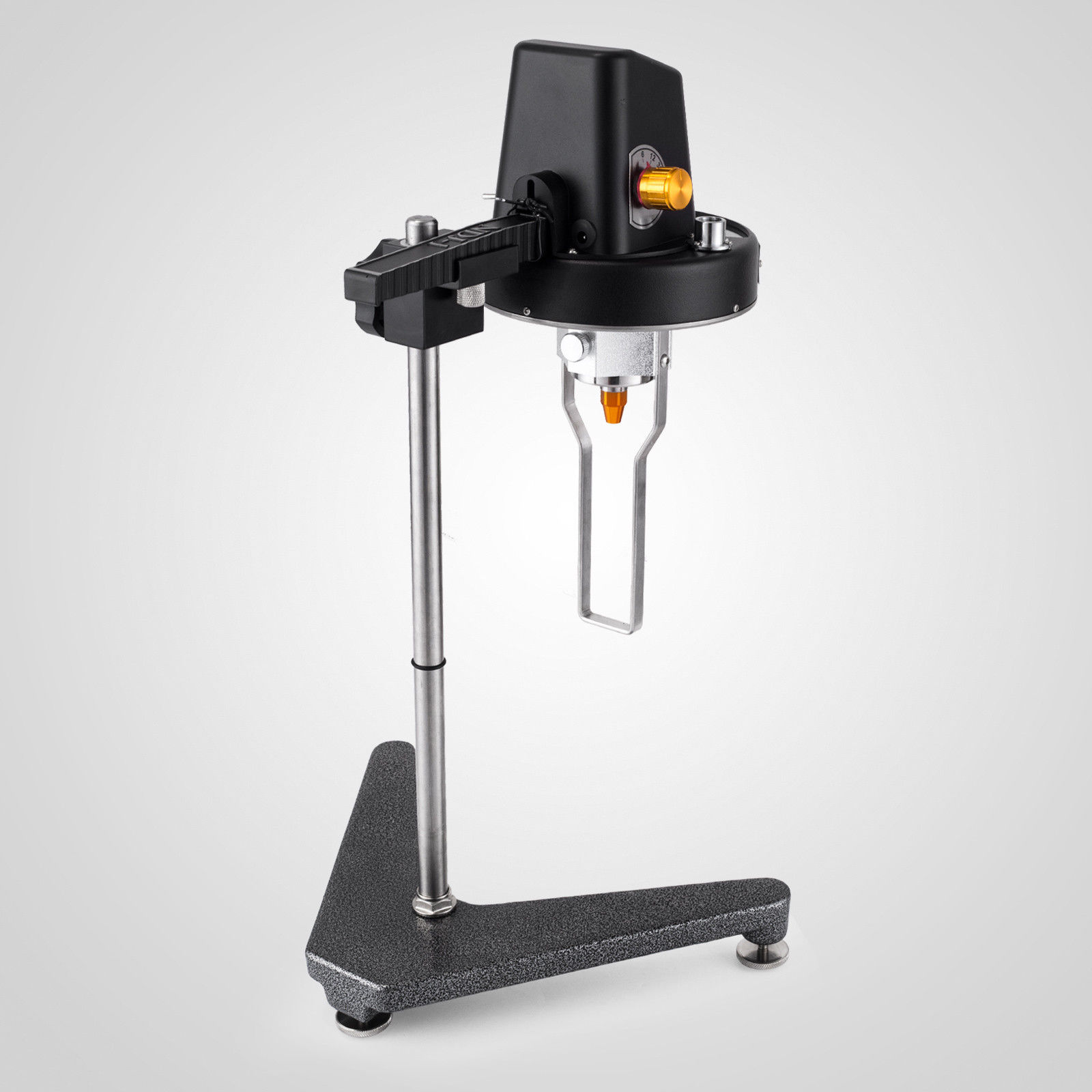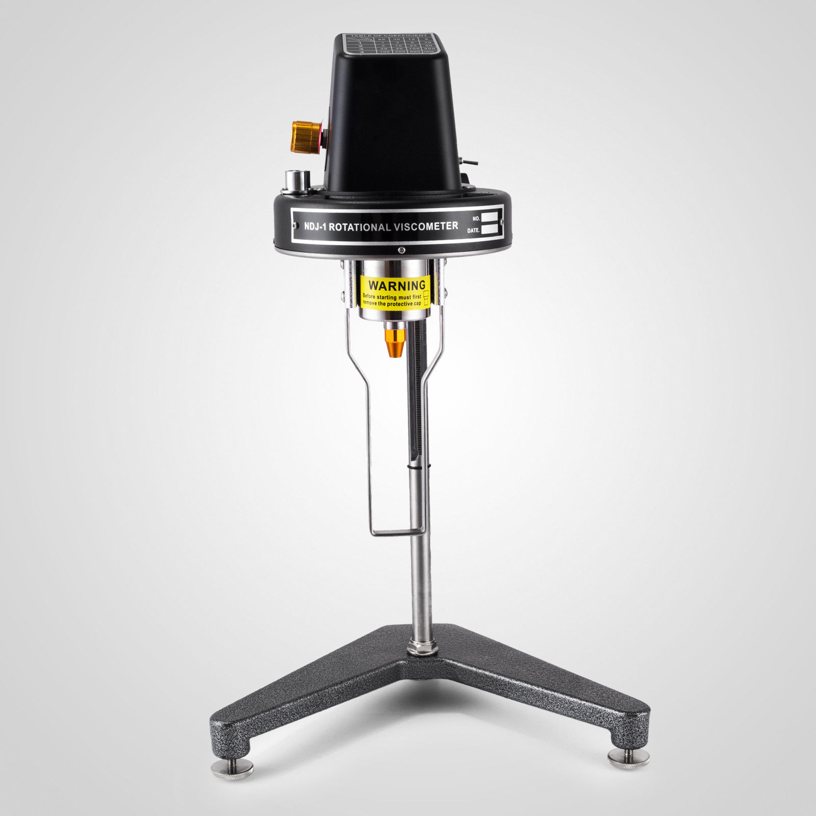 4. Extraiga el paquete de la forma del viscosímetro y móntelo en el collarín de elevación, ajústelo con el tornillo de fijación para evitar aflojarlo (lo más nivelado posible), conecte la fuente de alimentación, quite la banda elástica del joystick del puntero, atornille la tuerca de protección -cap afloje debajo del instrumento, quite la protección -cap.