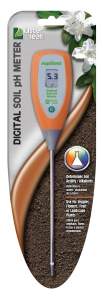 El medidor de pH de suelo digital medirá de forma simple y eficaz el nivel de pH en su jardín o en el suelo del césped. Se incluyen instrucciones extensas, pero sencillas. También se incluye una lista completa de las recomendaciones de pH de la planta. La pantalla ofrece lectura digital instantánea y una sonda larga de acero inoxidable comprueba el pH del suelo a nivel de raíz. El control del pH del suelo de una planta asegura condiciones ideales para el crecimiento.