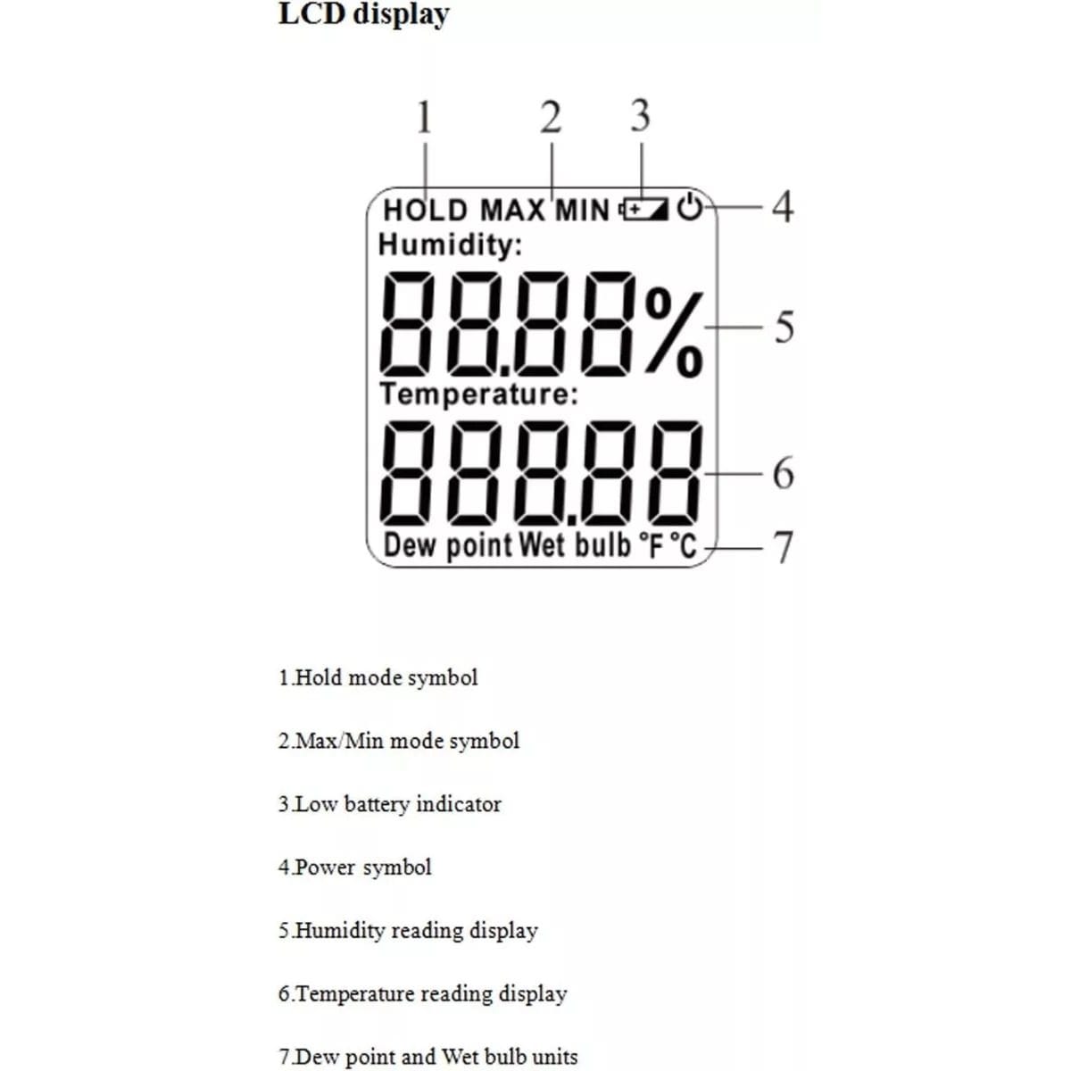 -Temperatura de bulbo húmedo: 0 ~ 80 ° C / 32 ~ 176 ° F