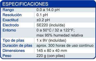 -Realiza mediciones de pH con una resolución de 0.1 HP y con compensación de temperatura manual.