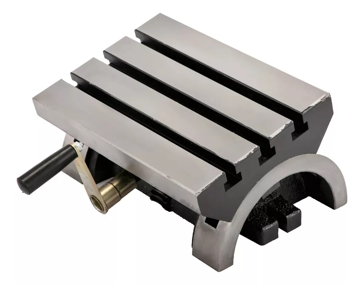 -Mango ajustable: Mesa giratoria para fresadora suministrada completa con manivela, puede ajustar el ángulo según sus necesidades. Rango de 0-90°.