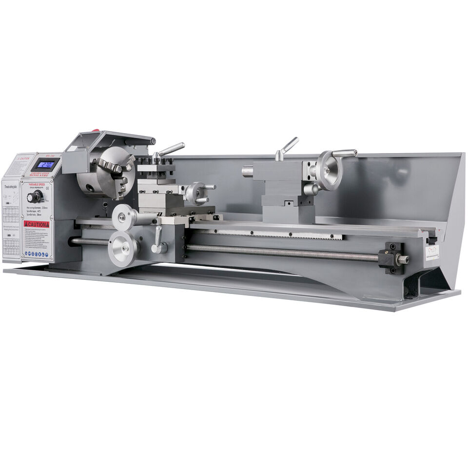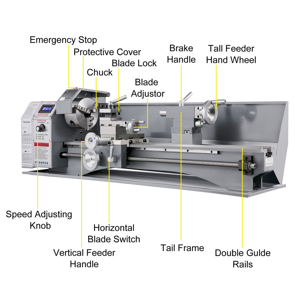 -VELOCIDAD INFINITAMENTE VARIABLE - El mini torno de metal es impulsado por un motor de CC con potencia: 1.1KW. Velocidad variable (Rpm): 50-2250 ± 10%. Cono en la nariz del husillo: MT5. La pantalla LED le muestra la velocidad clara y precisa para un trabajo preciso. Arranque suave, interruptor de cambio para rotación de esponja en sentido horario o antihorario. Opere ya sea manualmente o con la velocidad de alimentación automática ajustable.