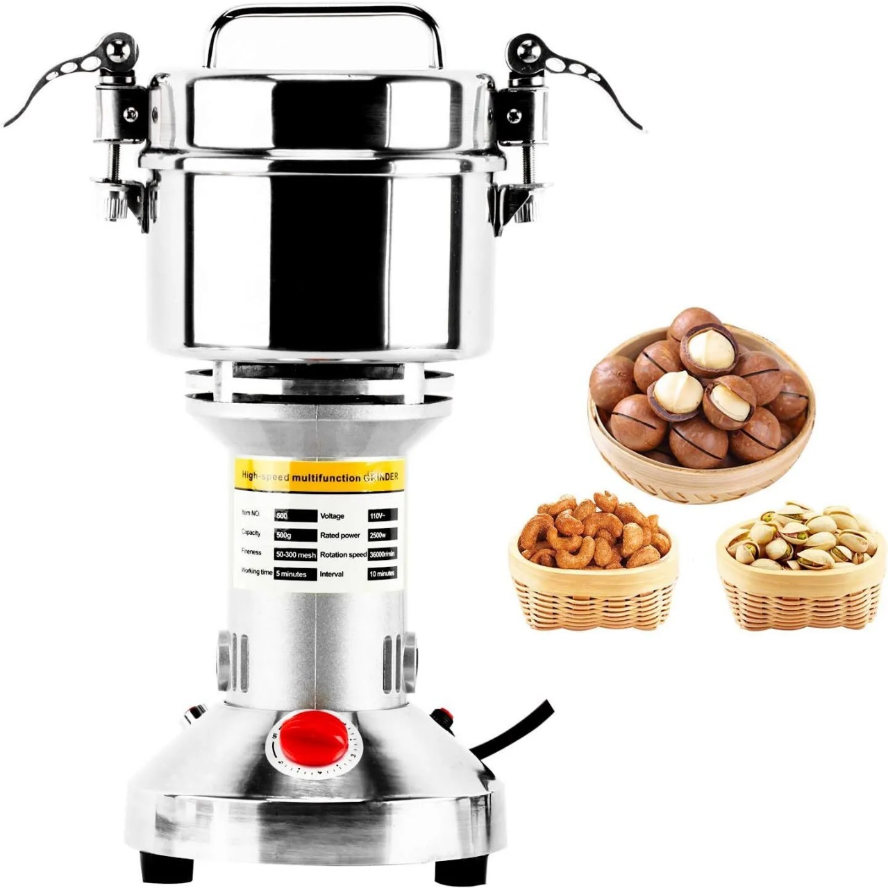 -La máquina adopta un motor de ultra alta velocidad, puede aplastar rápidamente todo tipo de alimentos deshidratados, arroz, maíz, sésamo, soja, alimento para peces, pimienta, medicina (como ganoderma, regaliz, tianqi, perla, etc.)