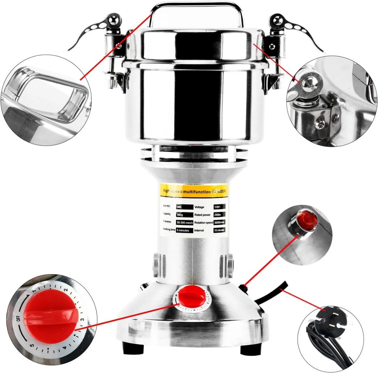 -El trabajo de molienda del molinillo de especias generalmente necesita de 30 segundos a 1 o 2 minutos. Con el tiempo, el trabajo provocará un sobrecalentamiento de los cojinetes.