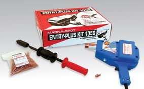 El más moderno y práctico reparador de golpes, sumidas y abolladuras sin tener que desarmar la pieza. Motor Guard Magna Spot, incorpora un sistema de soldado que fija a la carrocería una diminuta placa que funciona como punto de apoyo para poder sacar el golpe sin tener que desarmar la pieza, los resultados son sorprendentes permitiendo ahorrar tiempo y esfuerzo. El sistema cuenta con un martillo especial para poder realizar dicha acción. Ideal para tanques de motocicletas, bastidores, lienzos, cajuelas y toda pieza que requiera hojalatería y cuyo acceso o desarmado sea difícil.
