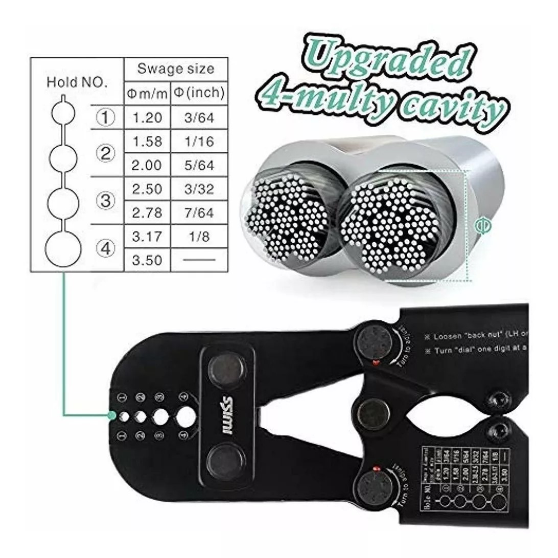 -Esta herramienta tiene una acción especial que se ha fabricado para comprimir los manguitos de engarce a la presión óptima, lo que resulta en un estampado súper limpio y súper fuerte.