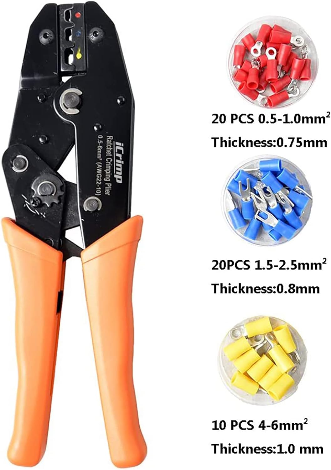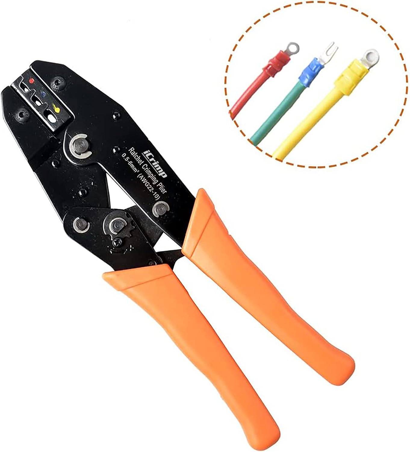 -Trinquete de alta precisión: se ajusta automáticamente al diámetro apropiado para terminales de crimpado.