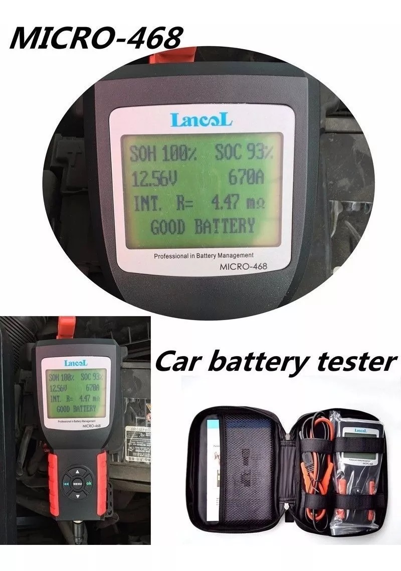 Micro-468 Battery Tester adopta actualmente la tecnología de prueba de conductancia más avanzada del mundo para medir de manera fácil, rápida y precisa la capacidad real de amperios de arranque en frío del vehículo batería de arranque, estado saludable de la batería y falla común del sistema de arranque del vehículo y sistema de carga, que puede ayudar al personal de mantenimiento a encontrar el problema de forma rápida y precisa, para lograr una reparación rápida del vehículo.