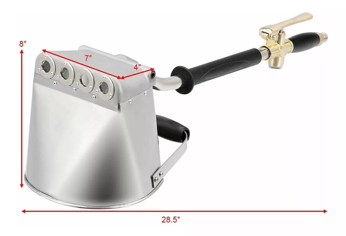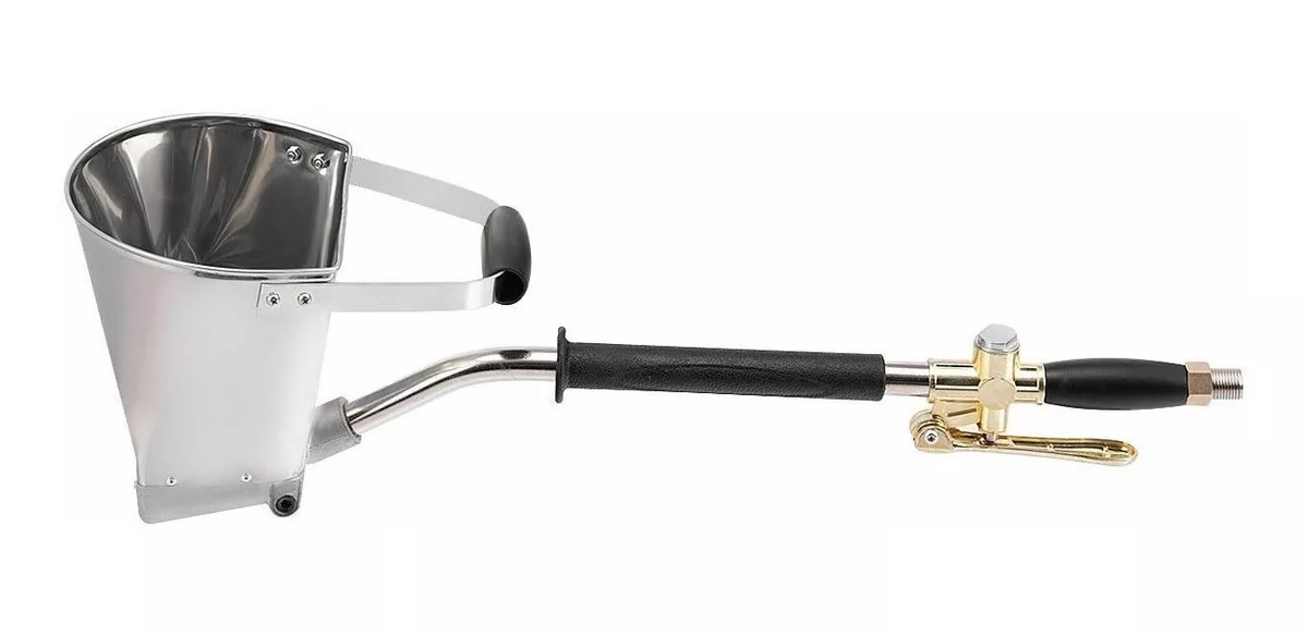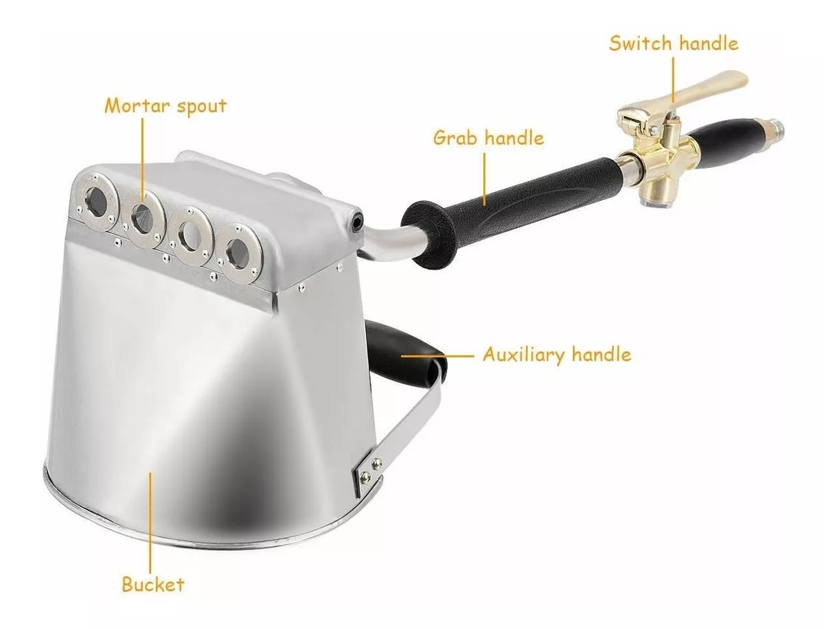 Instrucciones de funcionamiento: Conectar al compresor con la manguera incluida en el conjunto. Ajuste la presión en el regulador y rocíe fácilmente el mortero sobre las superficies preparadas.