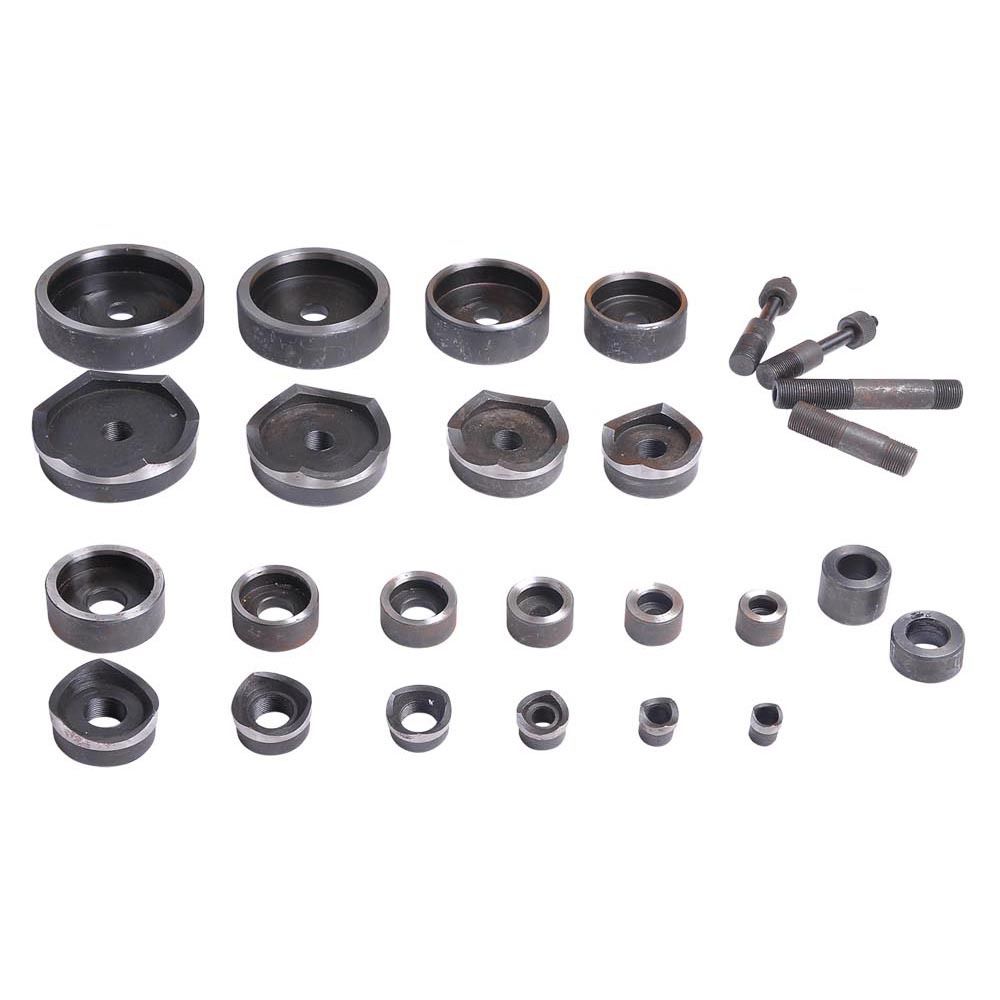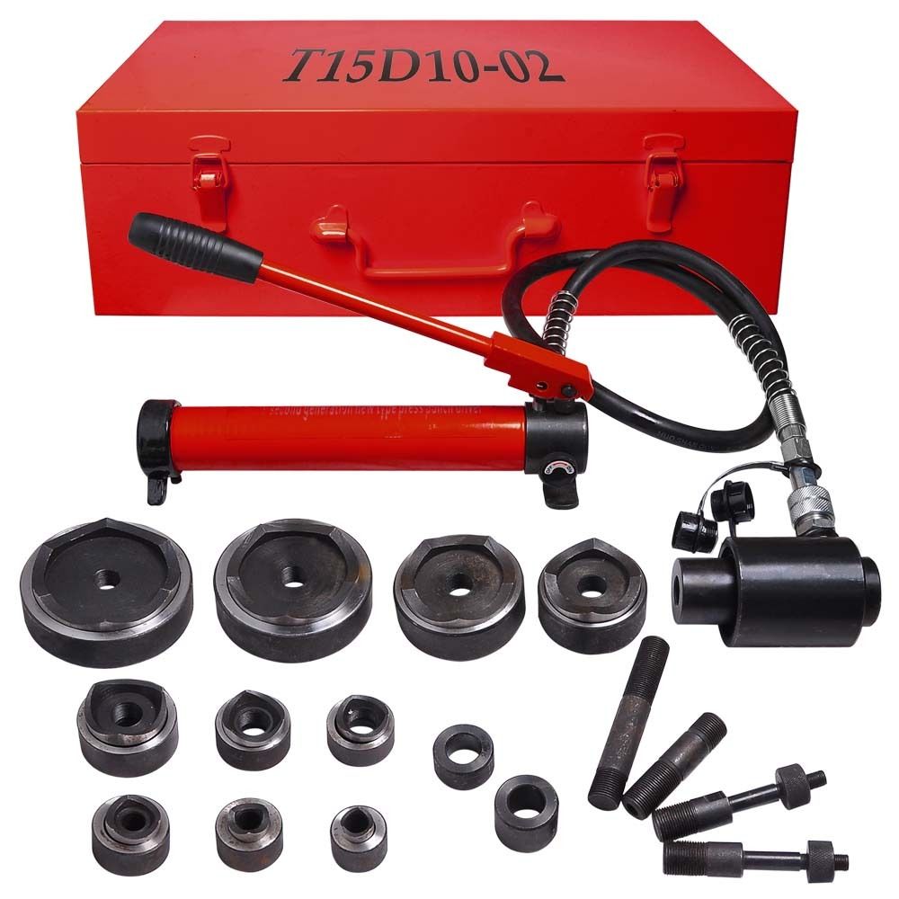 -Herramientas de perforación completas: el kit de herramientas de perforación hidráulica incluye 1 bomba de 15 toneladas, 2 pernos de tracción, 2 ejes de pistón, 2 espaciadores y 10 juegos de troqueles y punzones intercambiables para 1/2", 3/4", 1", 1 Tamaños de conductos de 1/4", 1 1/2", 2", 2 1/2", 3", 3 1/2" y 4", pueden perforar orificios de diferentes tamaños en acero inoxidable, hierro, acero, aluminio y plástico, etc. Grosor máximo de perforación de 1/8" (calibre 11) para hierro y 1/16" (calibre 16) para acero inoxidable, perfecto para usar en diferentes proyectos de perforación.