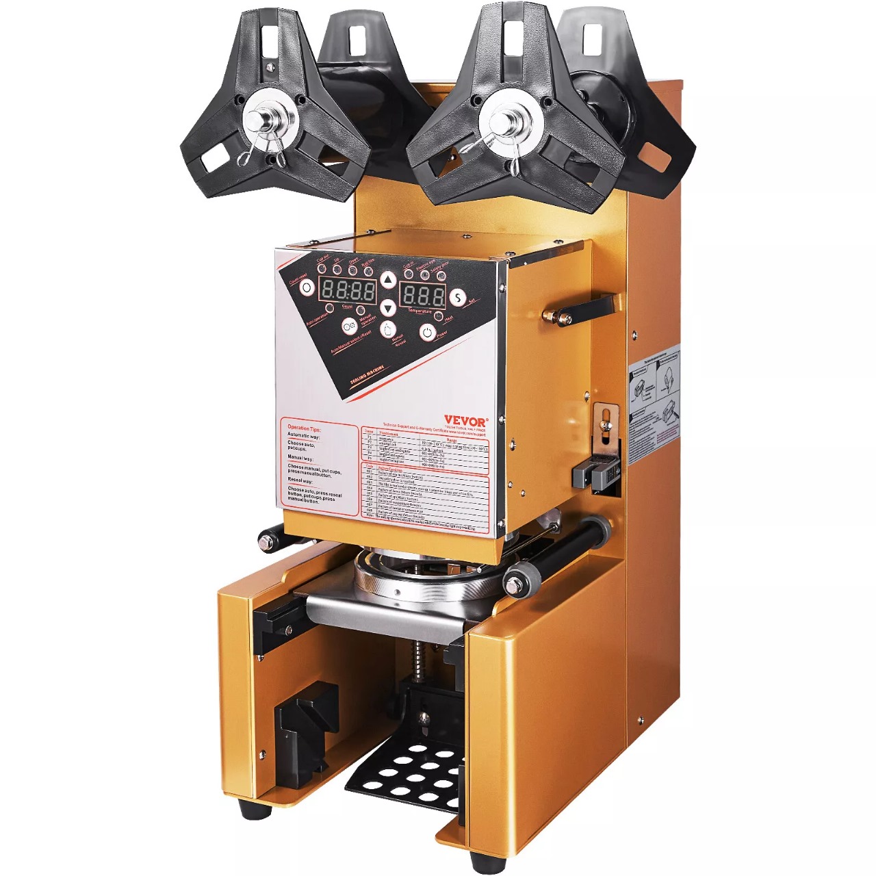 -Conteo automático: equipado con una pantalla inteligente LCD, la máquina selladora de vasos proporciona múltiples funciones, incluido el ajuste de temperatura, la puesta a cero y el conteo de vasos. Realiza un seguimiento de tus tazas selladas sin esfuerzo. Es como tener tu propio asistente de ventas, contando tus números diarios sin sudar.