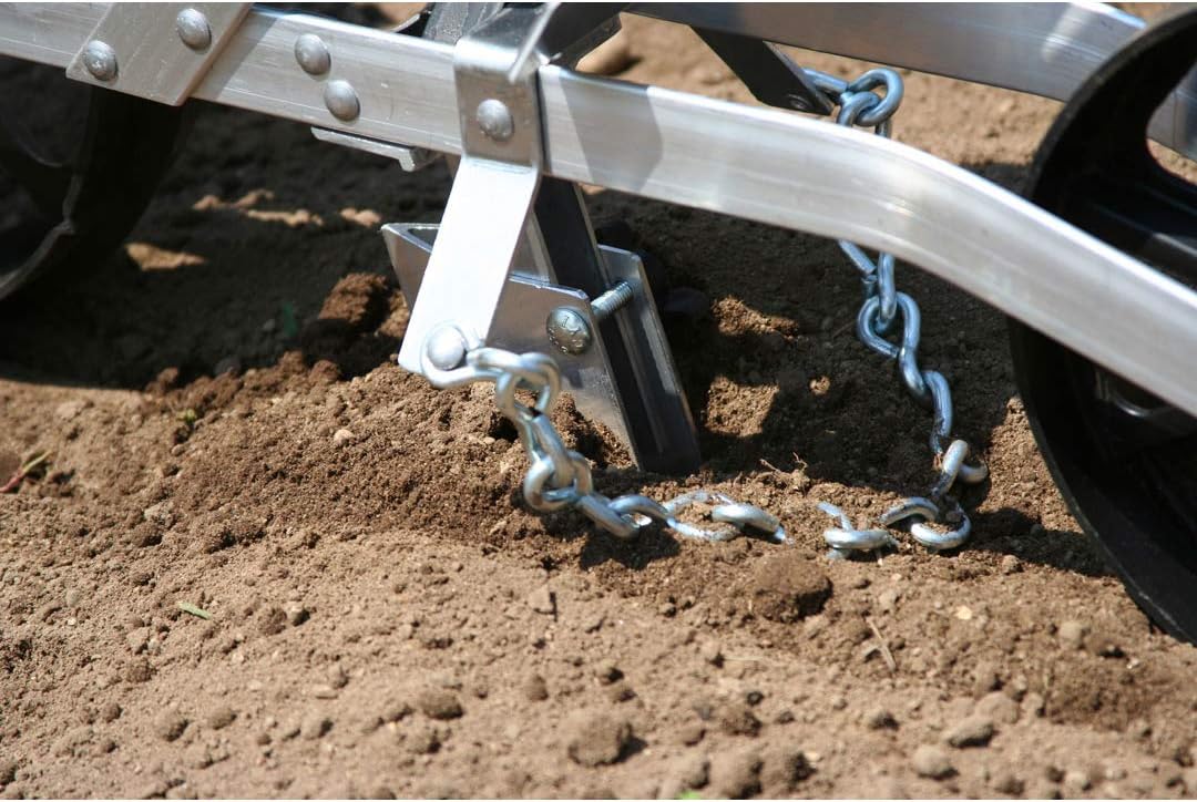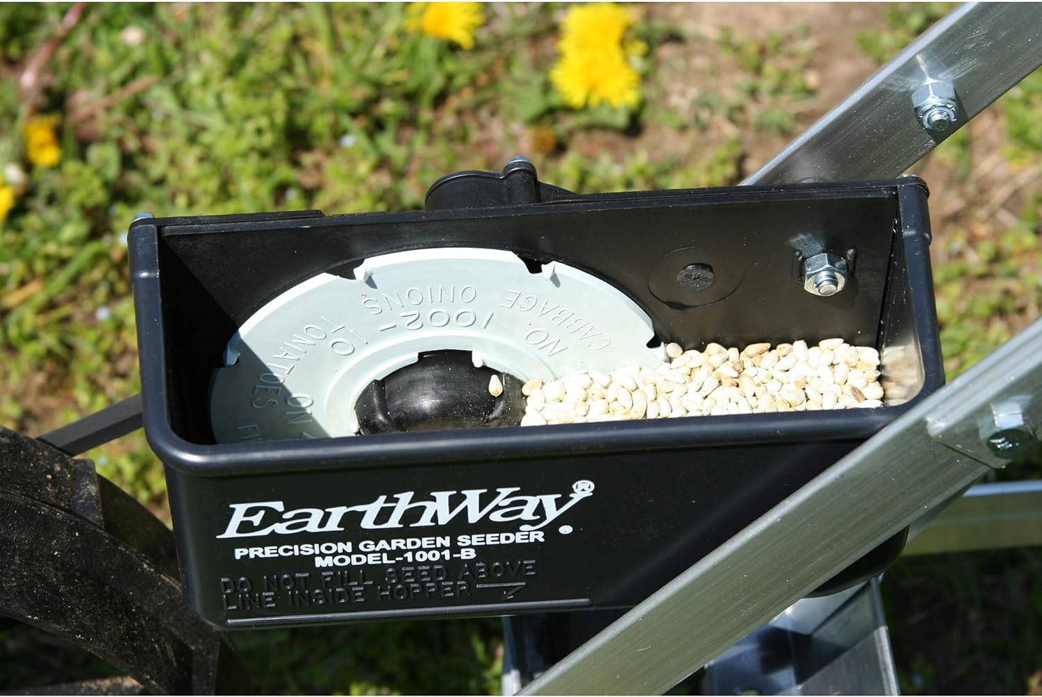 -Diseñado con un marco de acero con recubrimiento de polvo duradero, esta unidad contiene seis placas de semillas intercambiables que acomodan veinte tipos de semillas. La sembradora coloca las semillas en los intervalos apropiados sin atascarse y contiene un marcador de hileras ajustable que permite un espaciado preciso entre las semillas plantadas.