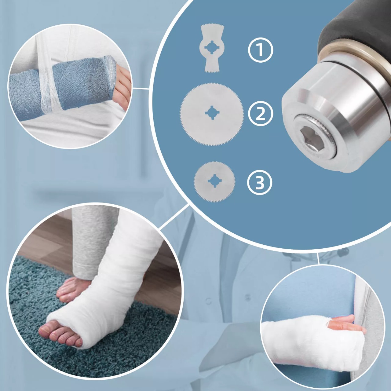-Varias hojas de sierra: el cortador de yeso médico eléctrico está equipado con hojas de sierra redondas grandes y pequeñas en forma de abanico. Las múltiples formas de las hojas de sierra permiten una amplia gama de necesidades de corte.
