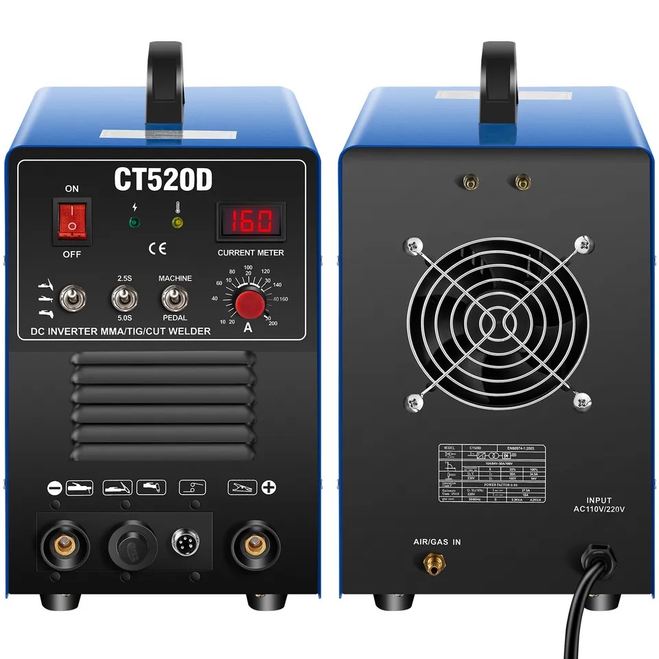 -Soldador 3 en 1: El panel del soldador es sencillo y más fácil de operar. Se pueden cambiar fácilmente tres modos: CORTE, MMA, TIG. La corriente de soldadura y el voltaje son ajustables. Puedes ajustar según tu aplicación y diferentes materiales de espesor.