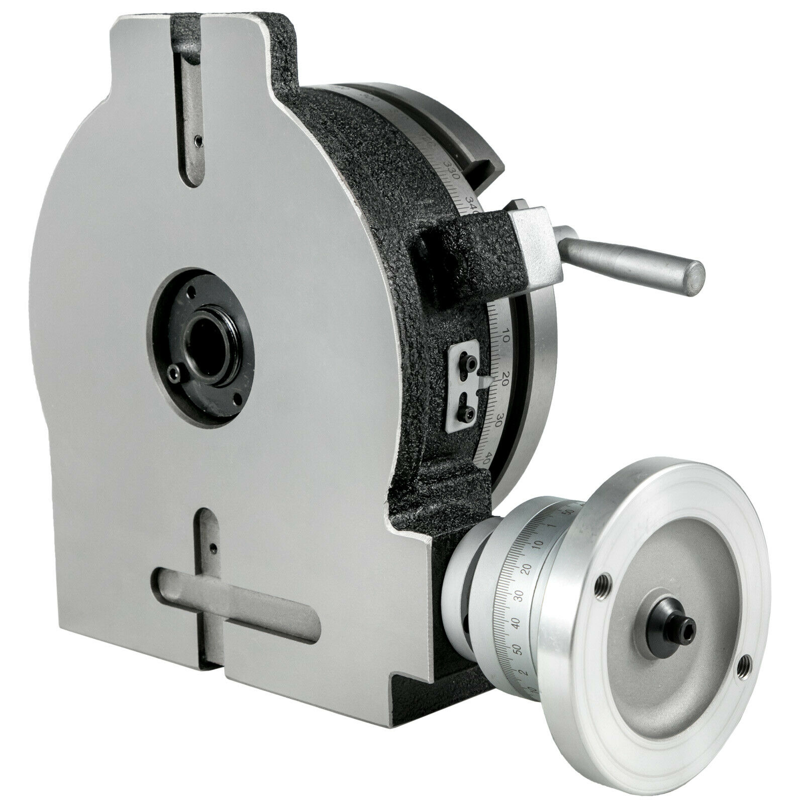 EXCELENTE PRECISIÓN - La placa de indexación de la mesa giratoria de precisión se puede graduar 360 grados. El dial de reinicio y el volante se pueden graduar en segundos. La escala mínima está calibrada a 10 segundos con alta precisión.